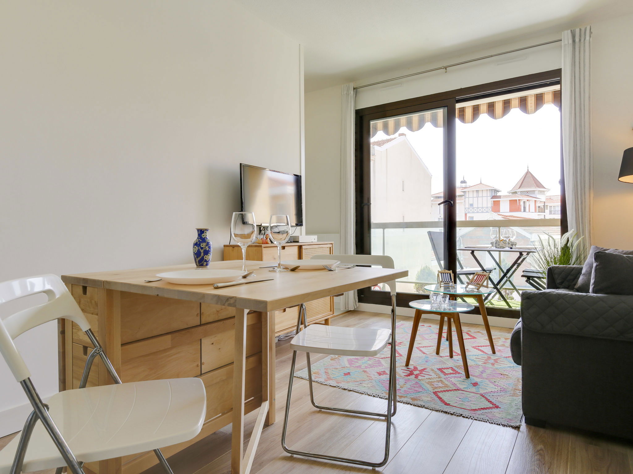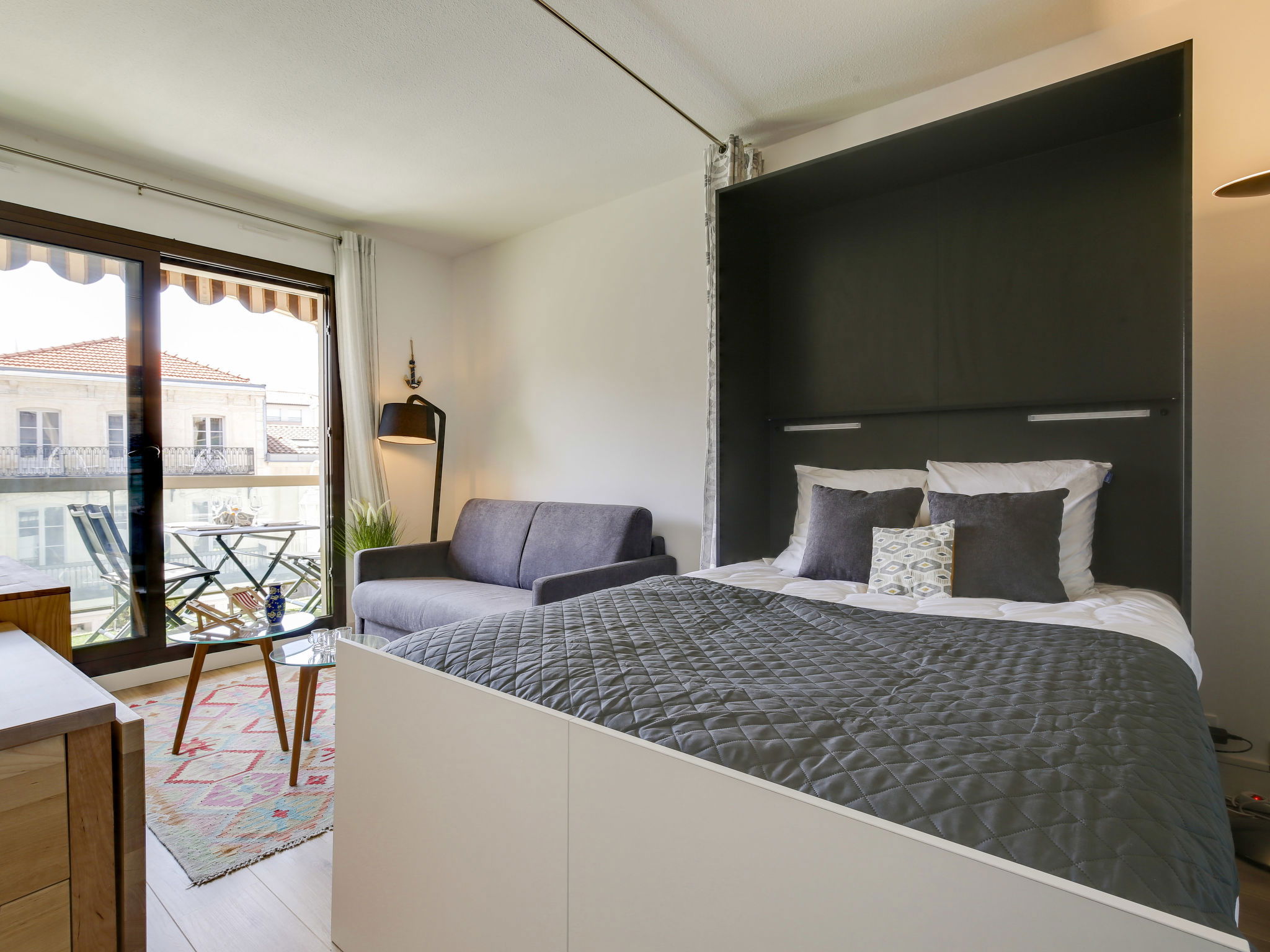 1-room studio 22 m2 on 2nd floor. Comfortable and beautiful furnishings: living/dining room with 1 double wall-trunk bed (1 x 140 cm, length 190 cm), TV (flat screen). Exit to the balcony. Open kitchen (dishwasher, 2 induction hot plates, toaster, kettle, microwave, electric coffee machine, Capsules for coffee machine (Dolce Gusto) extra). Shower/WC. Electric heating. Balcony 7 m2, south facing position. Balcony furniture. Facilities: washing machine, iron, hair dryer. Internet (WiFi, free). Parking space n 352. Please note: smoke alarm. 33009002335A0
