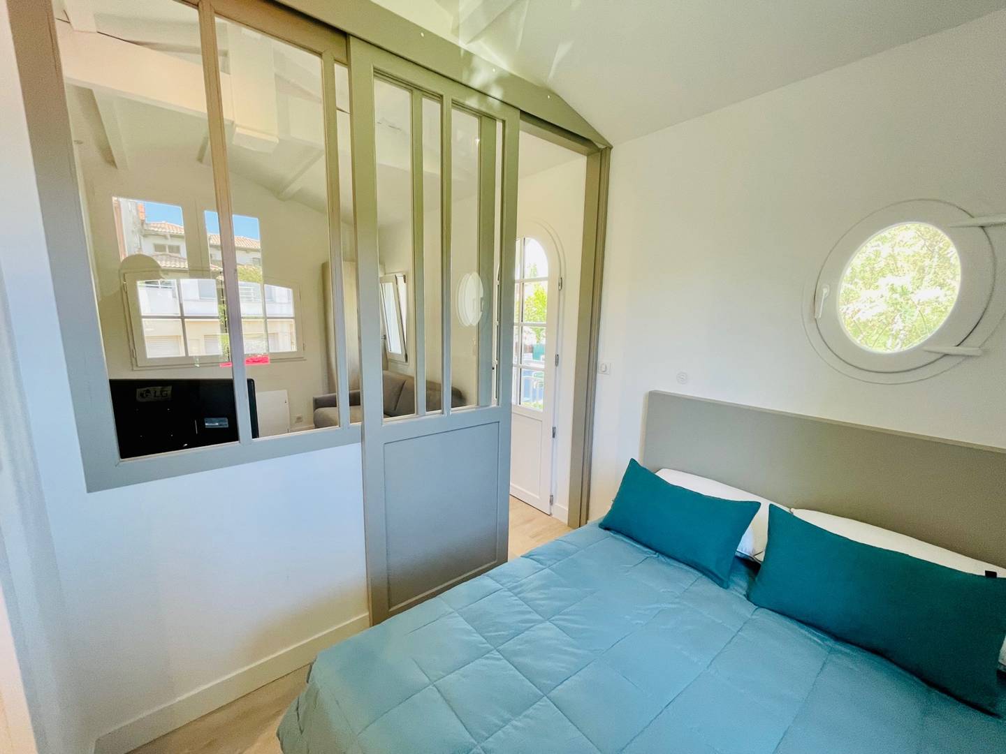 Comfortable studio of 21 m² for 3 people, completely refurbished in June 2022, with outdoor space on the ground floor giving direct access to the sailors' pier and the beach. ARCACHON, NOTRE-DAME / LA CROIX DES MARINS - Comfortable studio of 21 m² for 3 people, completely refurbished in June 2022, with outdoor space on the ground floor giving direct access to the sailors' jetty and the beach. Located on the floor of a small building, also refurbished, of which it is the only apartment, it is equipped with Internet / WIFI and consists of: - A living room with a fully equipped kitchen (traditional oven, 2 induction burners, extractor hood, small fridge, dishwasher, coffee maker, kettle, etc.), a lounge/dining area with 1 convertible sofa, television (only via a chromecast), table and chairs, a wardrobe column, a chest of drawers … Independent WC. - An enclosed sleeping area with a 140 cm bed and a bathroom with shower and vanity unit. - A large outdoor space on the ground floor, facing south-west, allowing you to take meals and others in the shade of an umbrella pine or a magnolia (garden furniture, chairs, umbrella, deckchairs and barbecue) . Cellar with washing machine and storage. Private parking space. Bike rack (provide anti-theft device). Ideally located with the beach and shops 50m away (bread, press, tobacco, pharmacy) and close to the cycle path. The accommodation is the annex of a house for 9 people in the 1st line overlooking the basin (ref. 501) on our website. Pets not allowed. White linen not provided: Possibility to rent some through our partner LocLinge (promo code: vacances33). Cancellation insurance included (with optional membership). Departure cleaning included (following normal and regular maintenance of the rental during the stay).