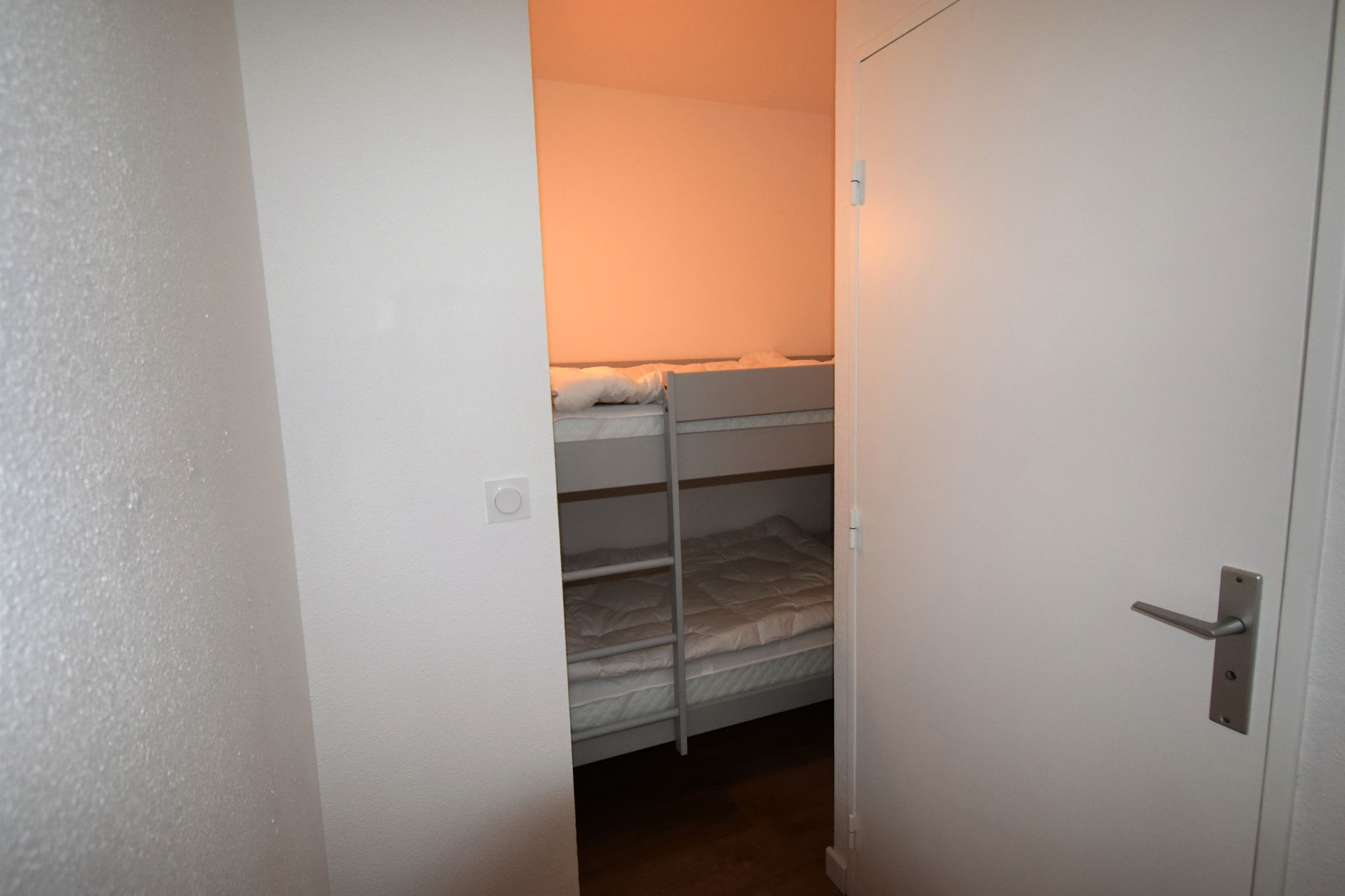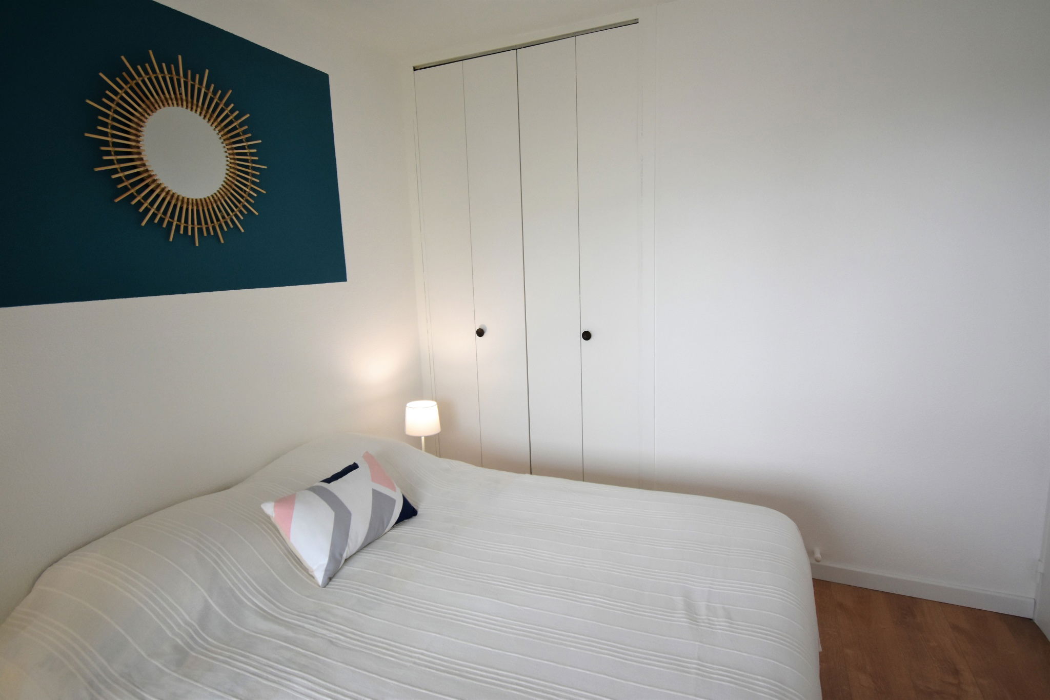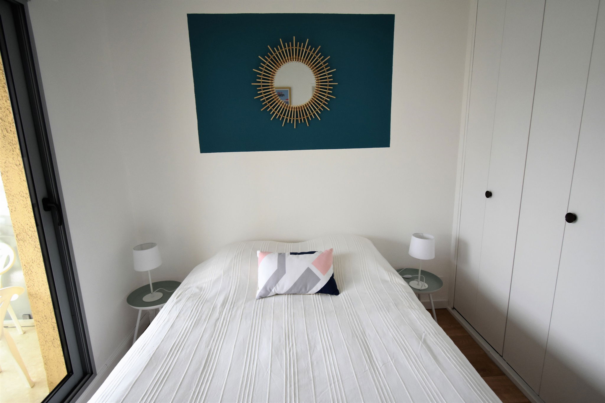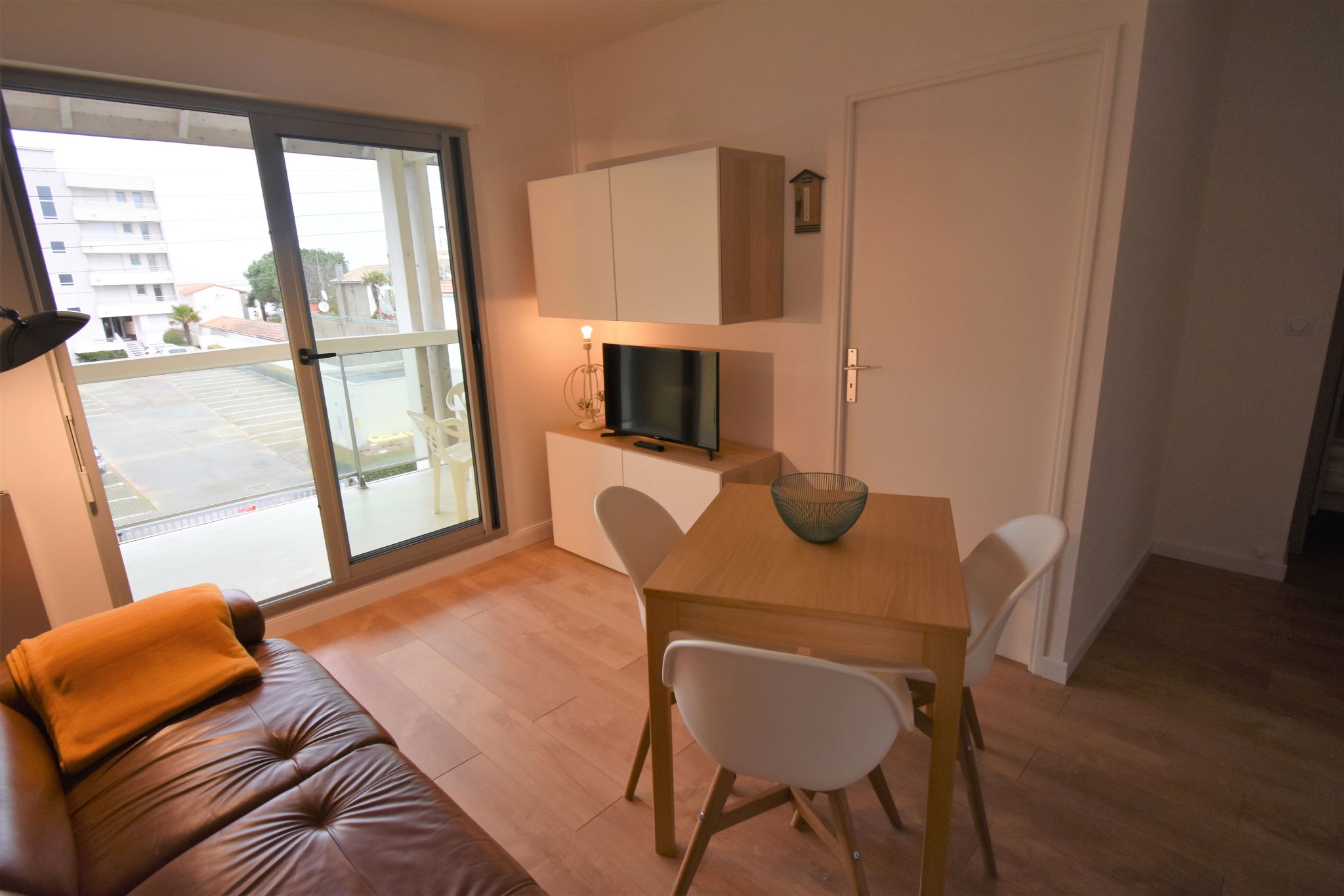 Arcachon, a stone's throw from the beach, the town center shops and its market, on the 2nd floor of a residence with lift, APARTMENT Appartement cabin completely renovated (winter 2020) of 29m2, with a living room (TV) with an equipped kitchen (washing machine, Senséo...) with balcony overlooking the street, a bedroom (140X200cm bed) on the balcony, a cabin (bunk beds), a small bathroom, a separate toilet. Possibility to park in the car park. Apartment offering all the comfort required to spend holidays on the basin, ideal for 1 couple with two children. Linen not provided, possibility of renting it via the agency, example: 1 pack of sheets + towels = 41€/week. Optional cleaning fee = 50€