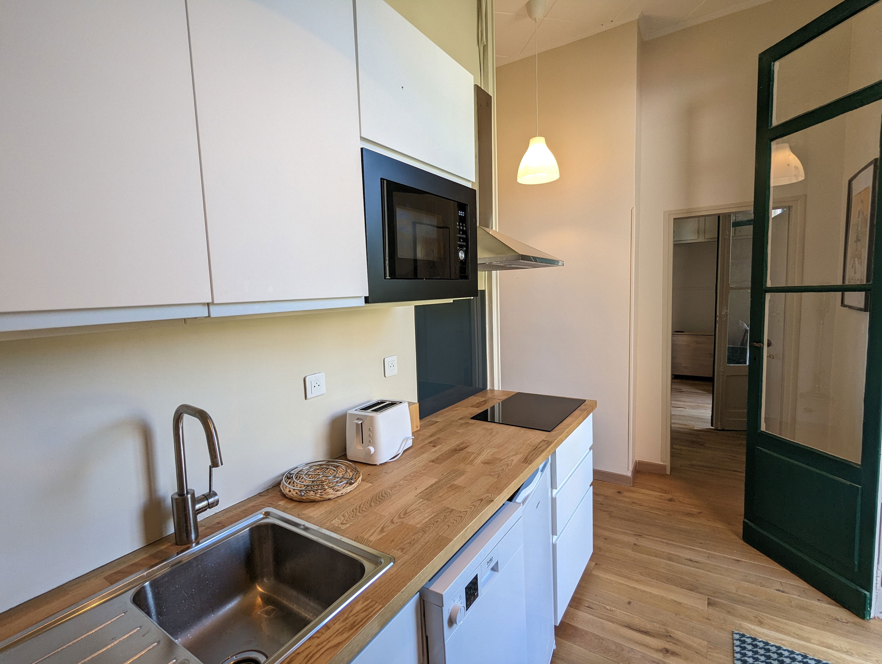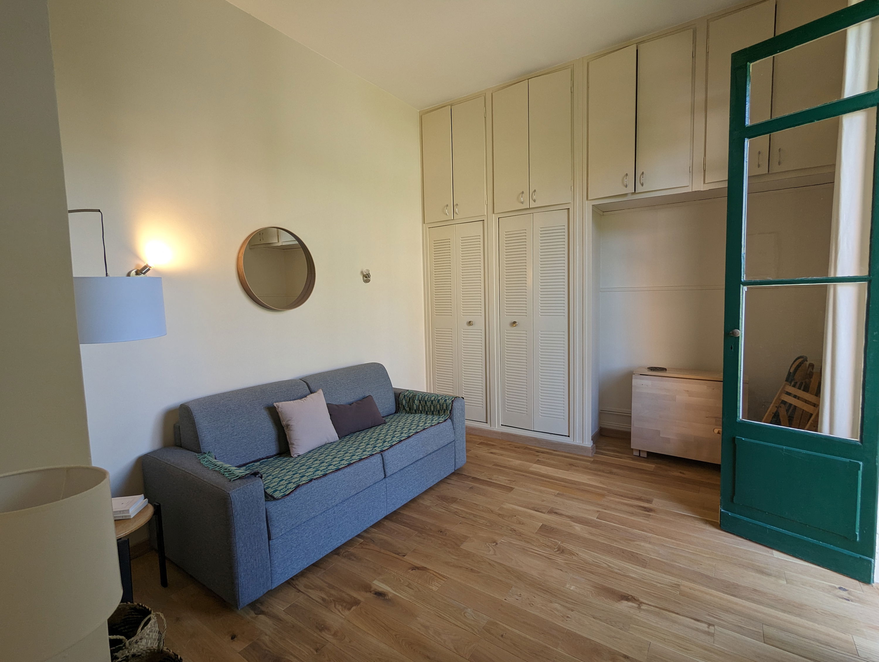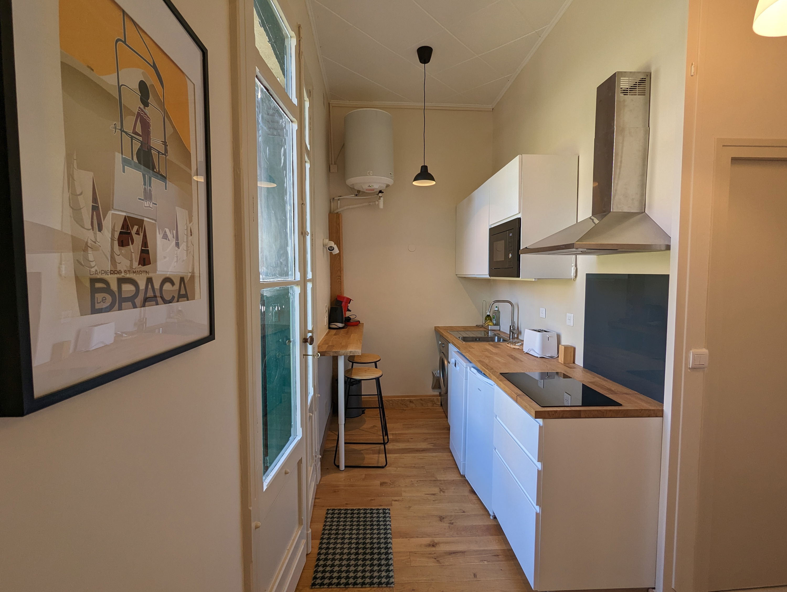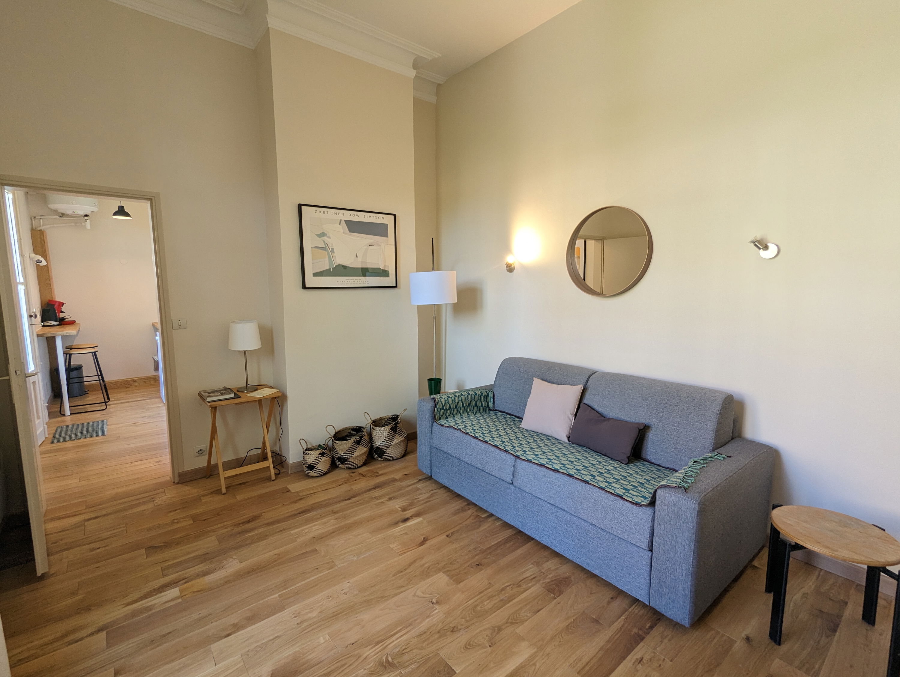 Arcachon - Ville d'Hiver district just next to the Parc Mauresque- 5 mins walk from the city center by taking the Parc Mauresque lift and close to the beaches. In a beautiful Arcachonnaise house, Studio of 27 m² living space on the ground floor, for 2 people, opening onto a quiet terrace and garden of 78 m²: - A small entrance, an equipped kitchen which opens onto the terrace with a high bar and 2 stools - A living room which opens onto the terrace and the garden: convertible sofa (sleeps 2 people), 2 bedside tables, 1 table with extension leaves and 4 chairs, no TV, large cupboard, shelf and wardrobe. -A bathroom: Italian shower, 1 washbasin with furniture (no hair dryer) and 1 WC, 1 secure and airy parking space, terrace and garden. An ideal studio to spend a great holiday in Arcachon. Linen not provided, possibility of renting some via the agency, eg: 1 pack of 160 cm sheets + towels = 42 Euros/week - 1 pack of 90 cm sheets + towels = 32 Euros/week. Optional cleaning fee 60 Euros