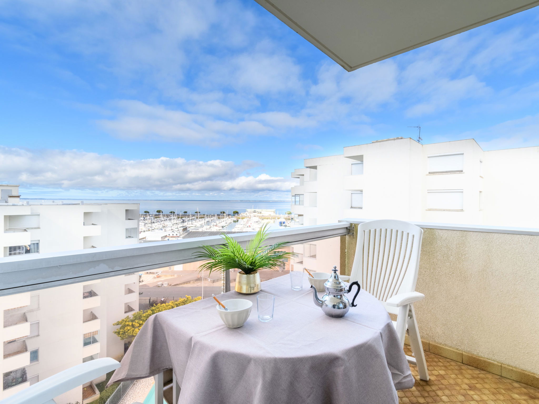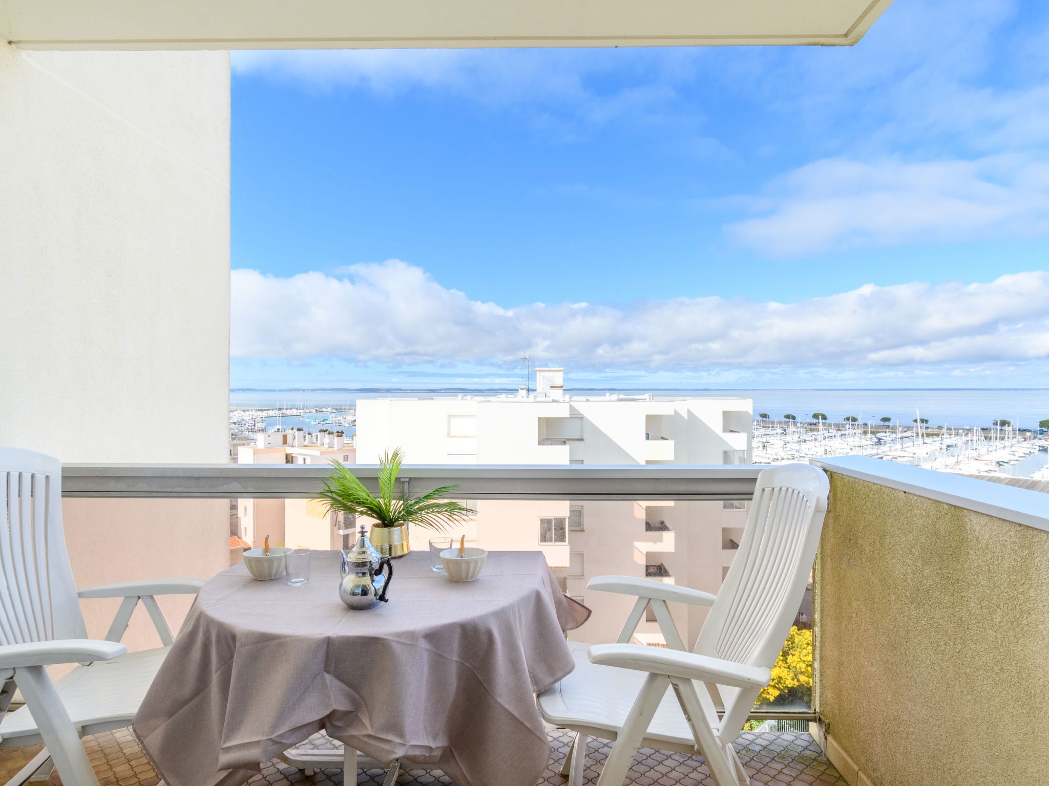 3-room apartment 44 m2 on 8th floor. Comfortable and beautiful furnishings: living/dining room with TV (flat screen). Exit to the balcony. 1 room with 1 french bed (1 x 140 cm, length 190 cm). 1 room with 1 wall-trunk bed (140 cm, length 190 cm). Exit to the balcony. Open kitchen (oven, dishwasher, 3 induction hot plates, toaster, kettle, microwave, freezer, electric coffee machine, Capsules for coffee machine (Nespresso) extra). Shower, sep. WC. Electric heating. Small balcony 5 m2, north facing position and west facing position, small balcony 5 m2, north facing position and, east facing position. Balcony furniture. Very beautiful view of the port. Facilities: washing machine, iron, hair dryer. Internet (WiFi, free). Parking space n 1554 (fenced 1 car). Please note: maximum 1 pet/ dog allowed. Smoke alarm. Offer by a private individual according to Art. 155, IV of CGI. 330090006753C
