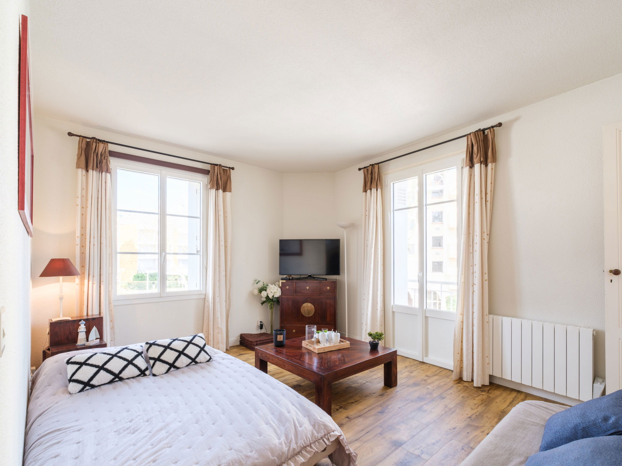 Arcachon: Small residence "Villa Béatrice". From the sea, 50 m from the beach. Public parking on the road. Shop 1 km, grocery, supermarket 450 m, shopping centre 4.6 km, restaurant 1 km, bakery 600 m, café 1 km, bus stop "Basilique Notre-Dame" 500 m, railway station "Arcachon" 1.8 km, sandy beach "Pereire" 50 m, park "Mauresque" 1.4 km, thermal baths "Thalazur" 1.7 km. Sports harbour 4.7 km, golf course (18 hole) 3.8 km. Nearby attractions: Dune du Pyla 9 km, Eratopia 10.1 km, Observatoire Sainte Cécile 1.3 km, Marché Municipal 1.3 km, Navette Maritime pour le Cap Ferret 1.5 km, Casino 1.7 km. Well-known lakes can easily be reached: Lac de la Magdeleine 11.4 km, Lac de Cazaux 17.3 km. Please note: no lift. The keys‘ handover takes place by the agency in Arcachon, 1 km.