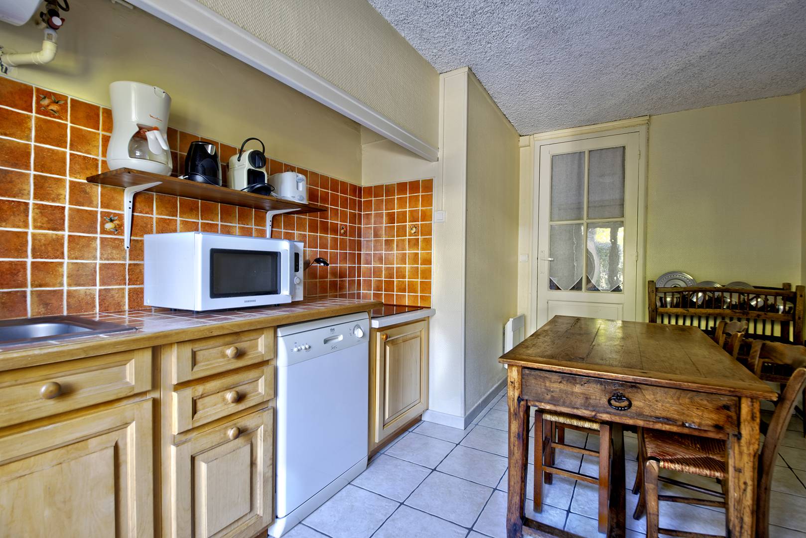 The living space consists of a bright living room with a sofa bed (140 cm sofa bed) and a television, as well as a dining room facing west. The separate and fully equipped kitchen offers the possibility of having meals and gives access to the outside. A corridor distributes a bathroom and separate toilet, while two semi-buried bedrooms, both facing east, each offer a 140 cm bed, as well as a closet or wardrobe.