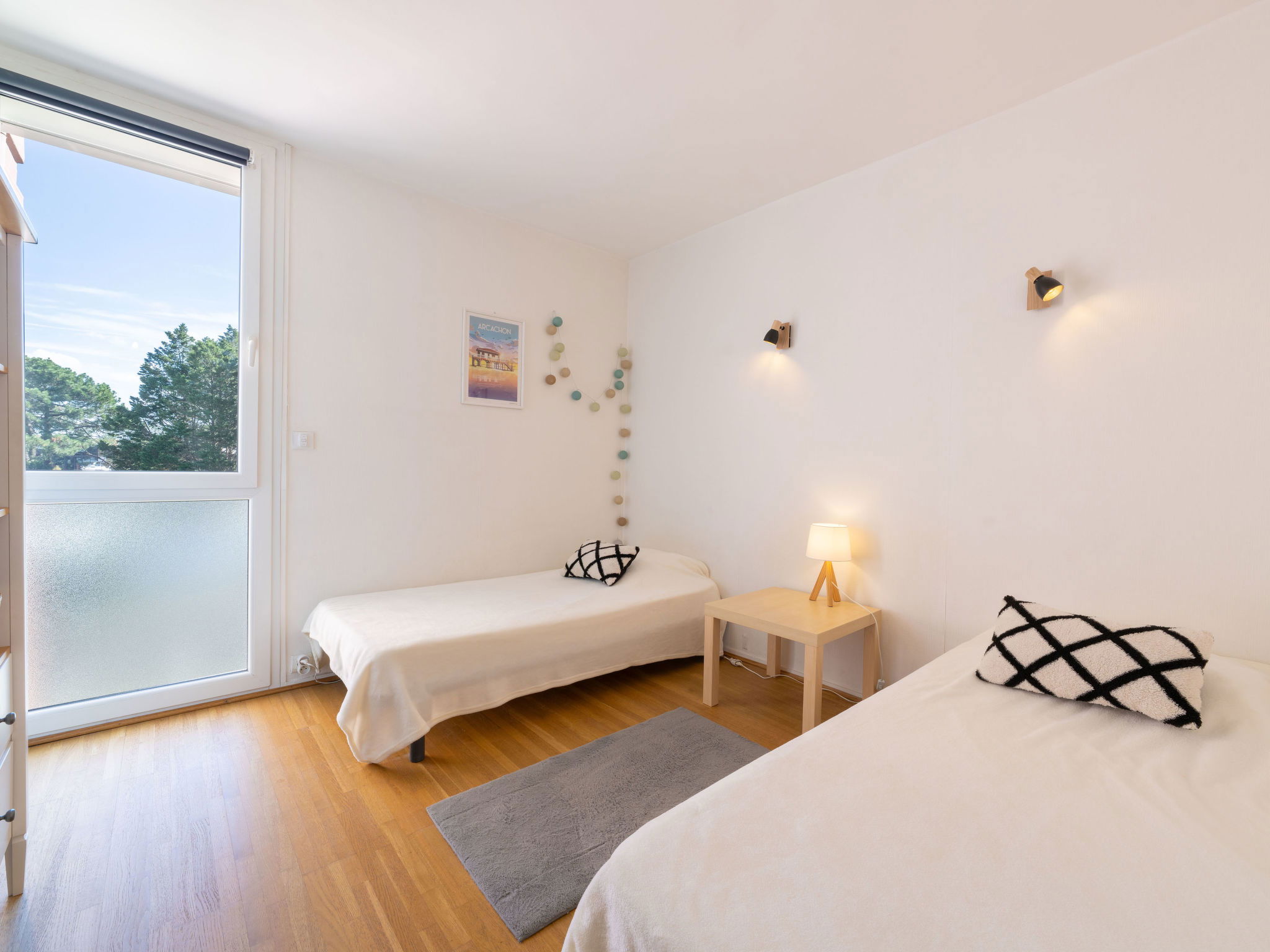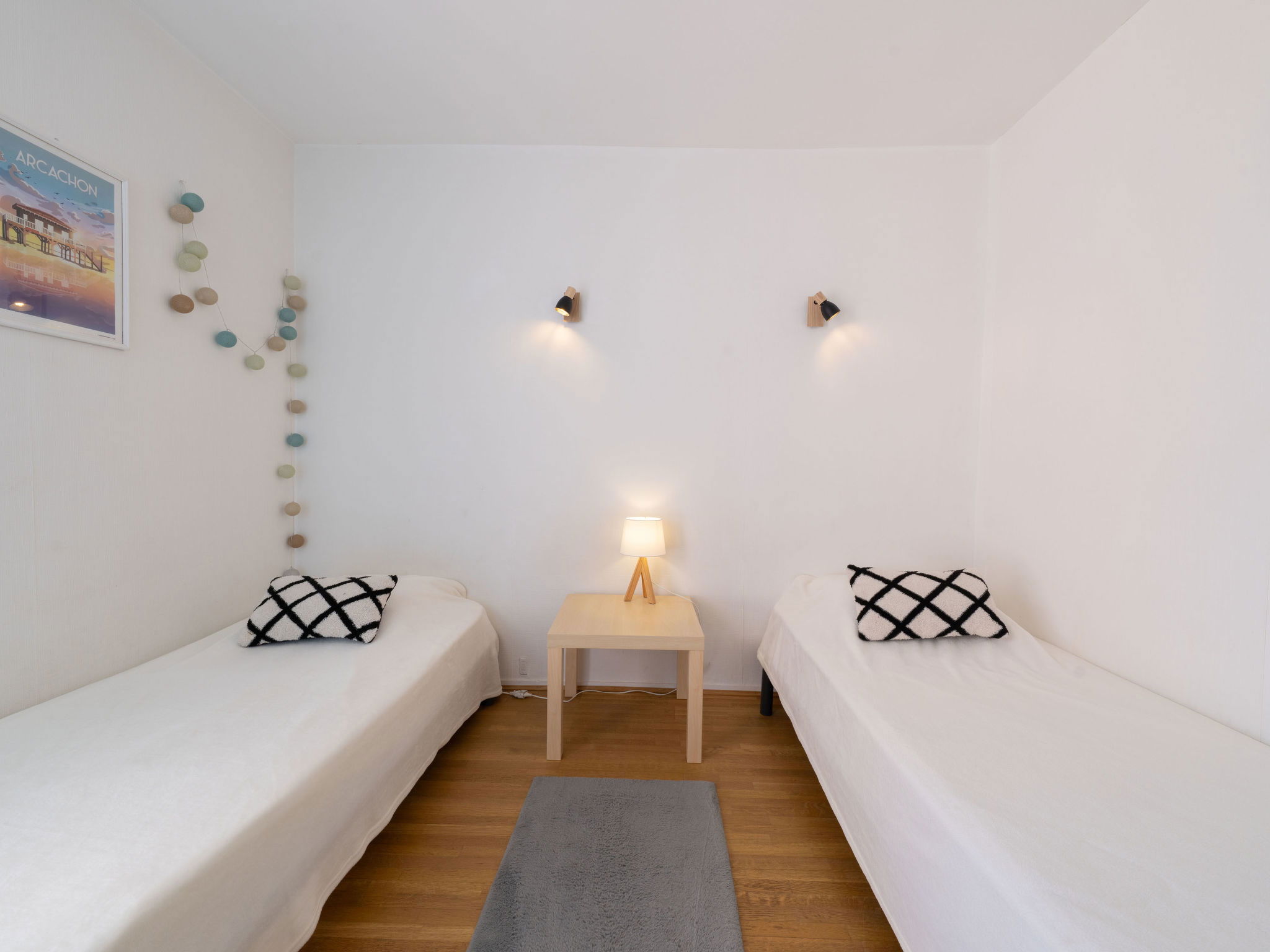 Arcachon: Residence "Arcachon Marines". In the district of d'Aiguillon, 1.2 km from the sea, 1.2 km from the beach. Shop 1 km, grocery, supermarket 850 m, shopping centre 2.6 km, restaurant 1 km, bar 1 km, bakery 1 km, café 1 km, bus stop "Les Mouettes" 50 m, railway station "Arcachon" 1.7 km, sandy beach "Aiguillon" 1.2 km, park "Mauresque" 2 km, indoor swimming pool 50 m, thermal baths "Thalazur" 14.2 km. Sports harbour 2.3 km, golf course (18 hole) 4.6 km. Nearby attractions: Dune du Pyla 11.2 km, ArcaJetMarine 1.2 km, Observatoire Sainte Cécile 2.5 km, Marché Municipal 2.3 km, Eratopia 7.5 km, Navette Maritime pour le Cap Ferret 1.7 km. Well-known lakes can easily be reached: Lac de la Magdeleine 8.8 km, Lac de Cazaux 16.3 km. The keys‘ handover takes place by the agency in Arcachon, 2 km.