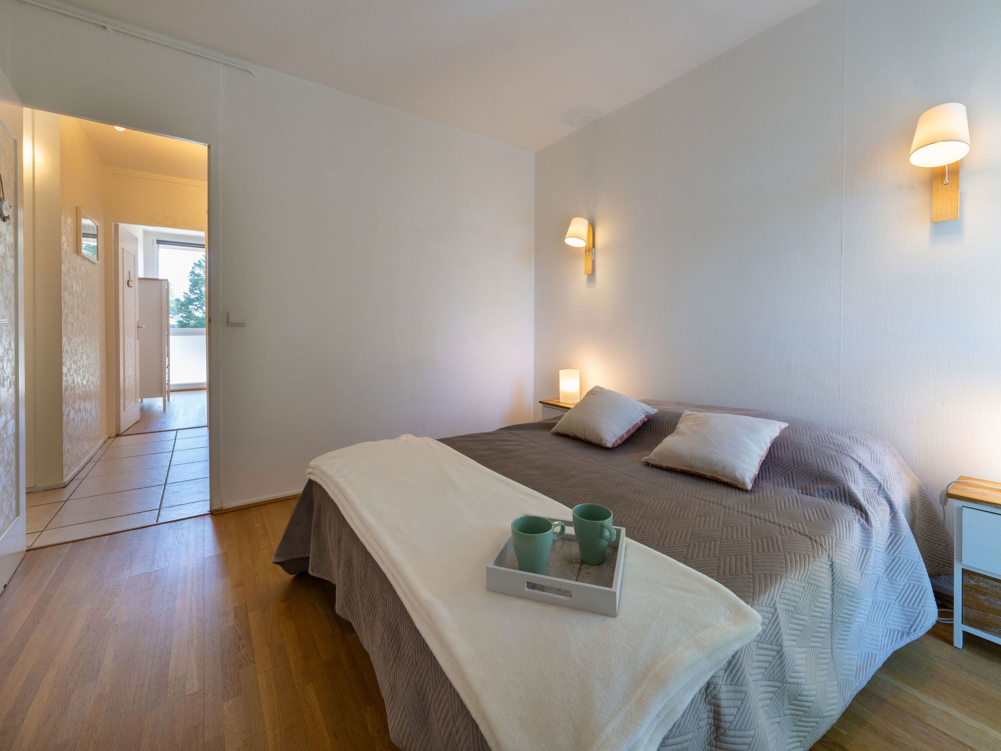 3-room apartment 73 m2 on 2nd floor. Comfortable and beautiful furnishings: living/dining room with TV (flat screen). Exit to the balcony. 1 room with 1 french bed (1 x 140 cm, length 190 cm). 1 room with 2 beds (90 cm, length 190 cm). Kitchen (4 hot plates, oven, dishwasher, toaster, kettle, microwave, freezer, electric coffee machine, Capsules for coffee machine (Nespresso) extra). Shower, sep. WC. Underfloor heating. Balcony 7 m2, east facing position. Balcony furniture. Facilities: washing machine, iron, hair dryer. Internet (WiFi, free). Parking space n 597 (1 car). Please note: smoke alarm, no lift. Offer by a private individual according to Art. 155, IV of CGI. 33529001777C5