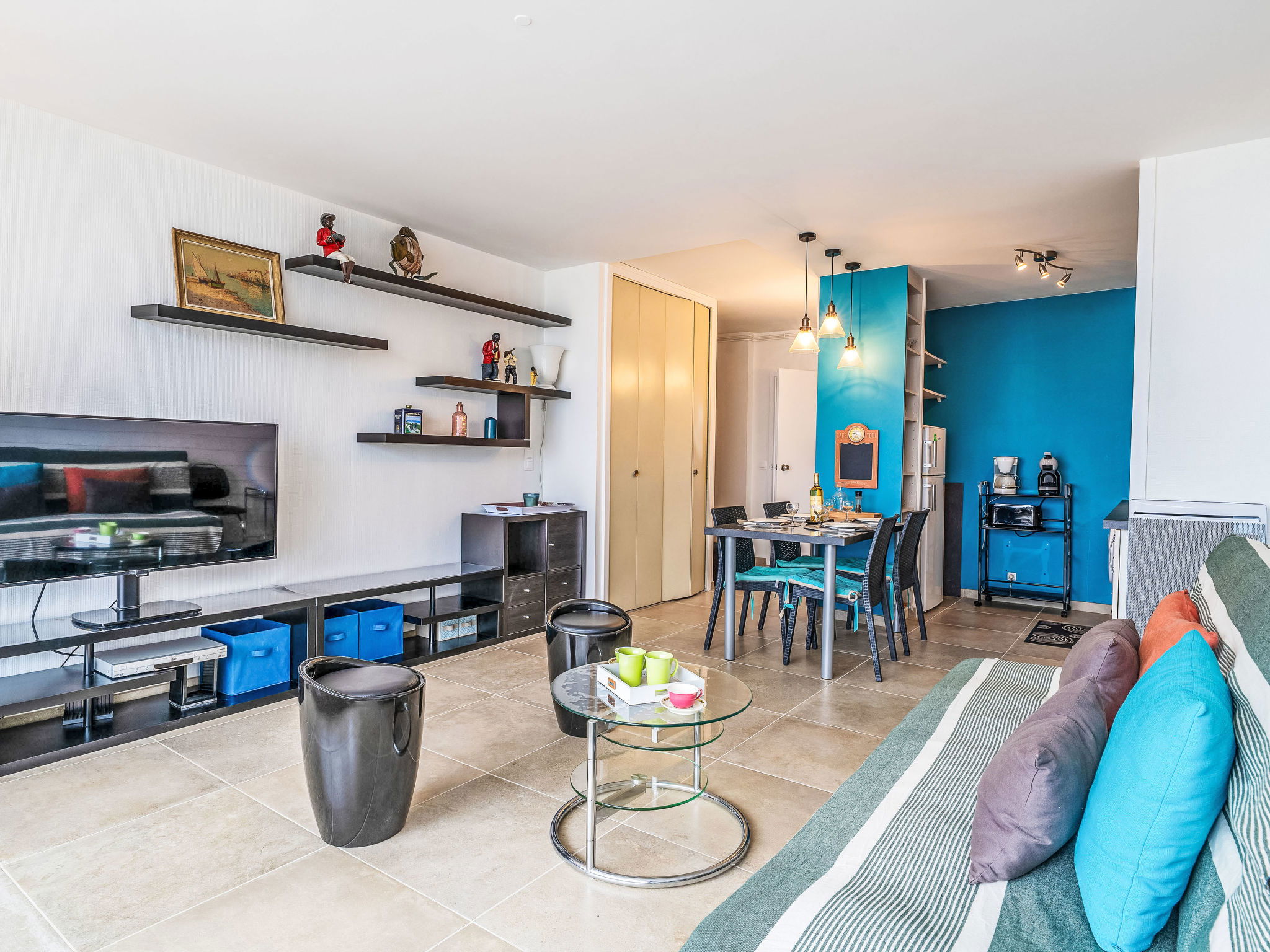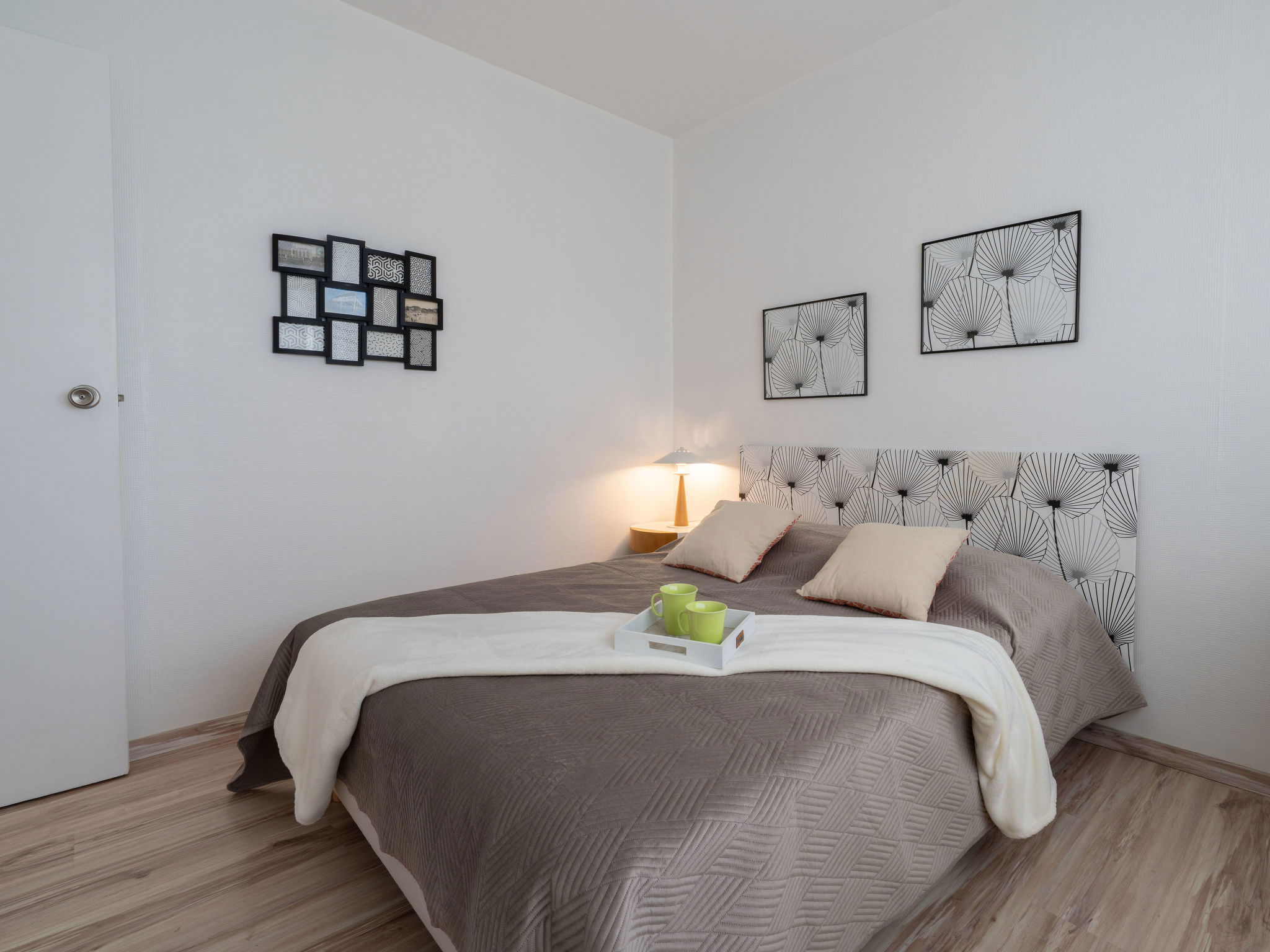 3-room apartment 57 m2 on 3rd floor. Comfortable and beautiful furnishings: living/dining room with TV (flat screen). Exit to the terrace. 1 room with 1 french bed (1 x 140 cm, length 190 cm). 1 room with 2 beds (80 cm, length 190 cm). Open kitchen (mini-oven, dishwasher, 3 induction hot plates, toaster, kettle, microwave, freezer, electric coffee machine, Capsules for coffee machine (Dolce Gusto) extra). Shower, sep. WC. Electric heating. Terrace 8 m2, north facing position. Terrace furniture. Very beautiful view of the sea. Facilities: washing machine, hair dryer. Internet (WiFi, extra). Parking space n 177 (fenced 1 car). Please note: smoke alarm. Offer by a private individual according to Art. 155, IV of CGI. 330090005395E