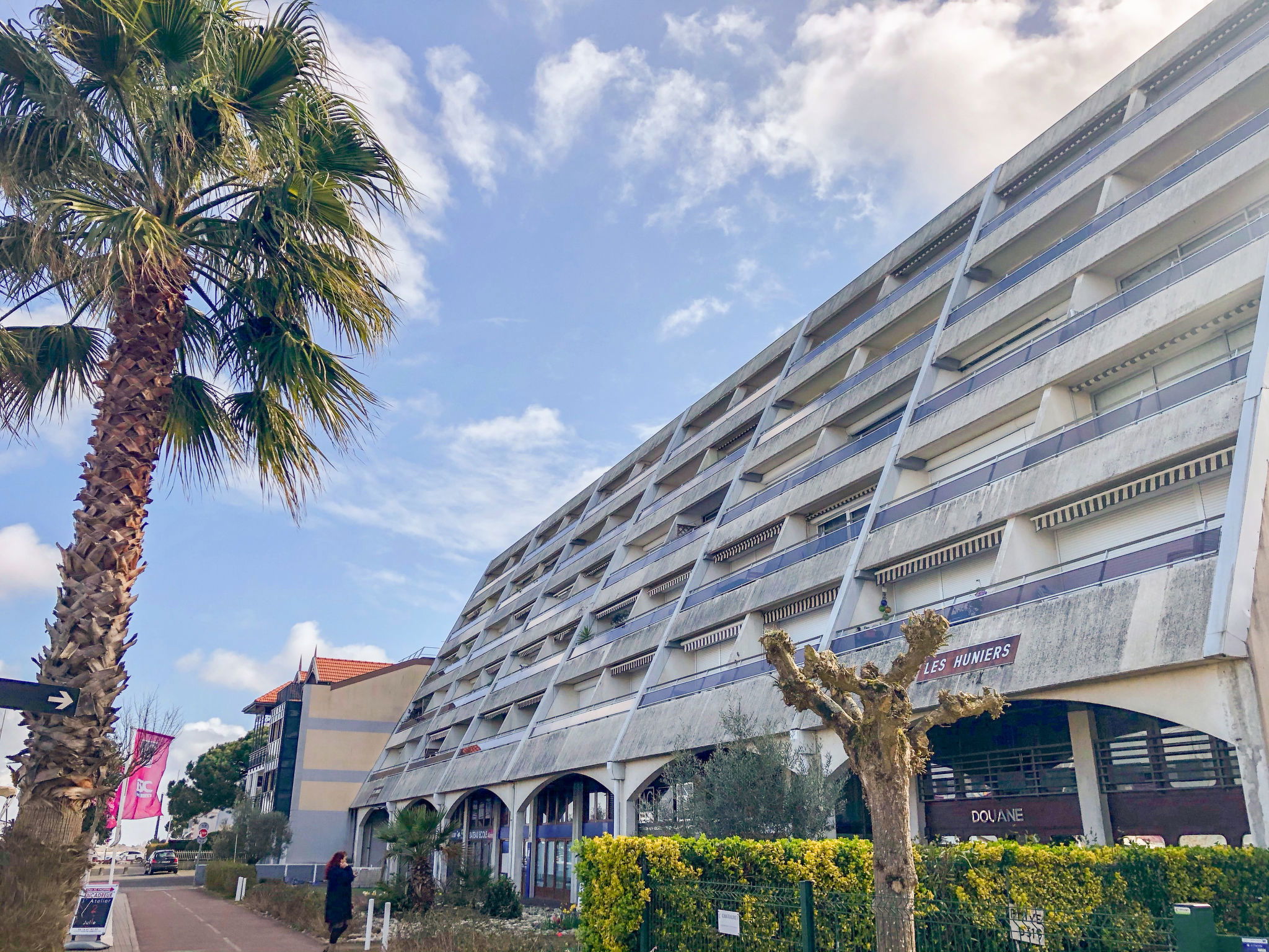 Arcachon: Beautiful residence "Les Huniers", 6 storeys. In the district of Port de Plaisance 2 km from the centre of Arcachon, in a busy position, 50 m from the sea, 200 m from the beach. In the complex: lift, storage room for bicycles. Shop, grocery, restaurant, bar, bakery, café 250 m, bus stop "Aiguillon" 150 m, railway station "Arcachon" 1.8 km, sandy beach 200 m, park "Mauresque" 2.5 km, thermal baths "Thalazur" 4.6 km. Sports harbour 100 m, golf course (18 hole) 4.5 km, surf school 5.7 km, cycle lane 50 m. Nearby attractions: Dune du Pyla 10.2 km, Marché Municpal d'Arcachon 2.3 km, Navette Maritime pour le Cap Ferret 2.2 km, ArcaJetMarine 110 m, Casino 1.8 km, Aqualand 8.4 km. Well-known lakes can easily be reached: Lac de la Magdeleine 9.1 km, Lac de Cazaux 15.6 km. The keys‘ handover takes place by the agency in Arcachon, 2 km.