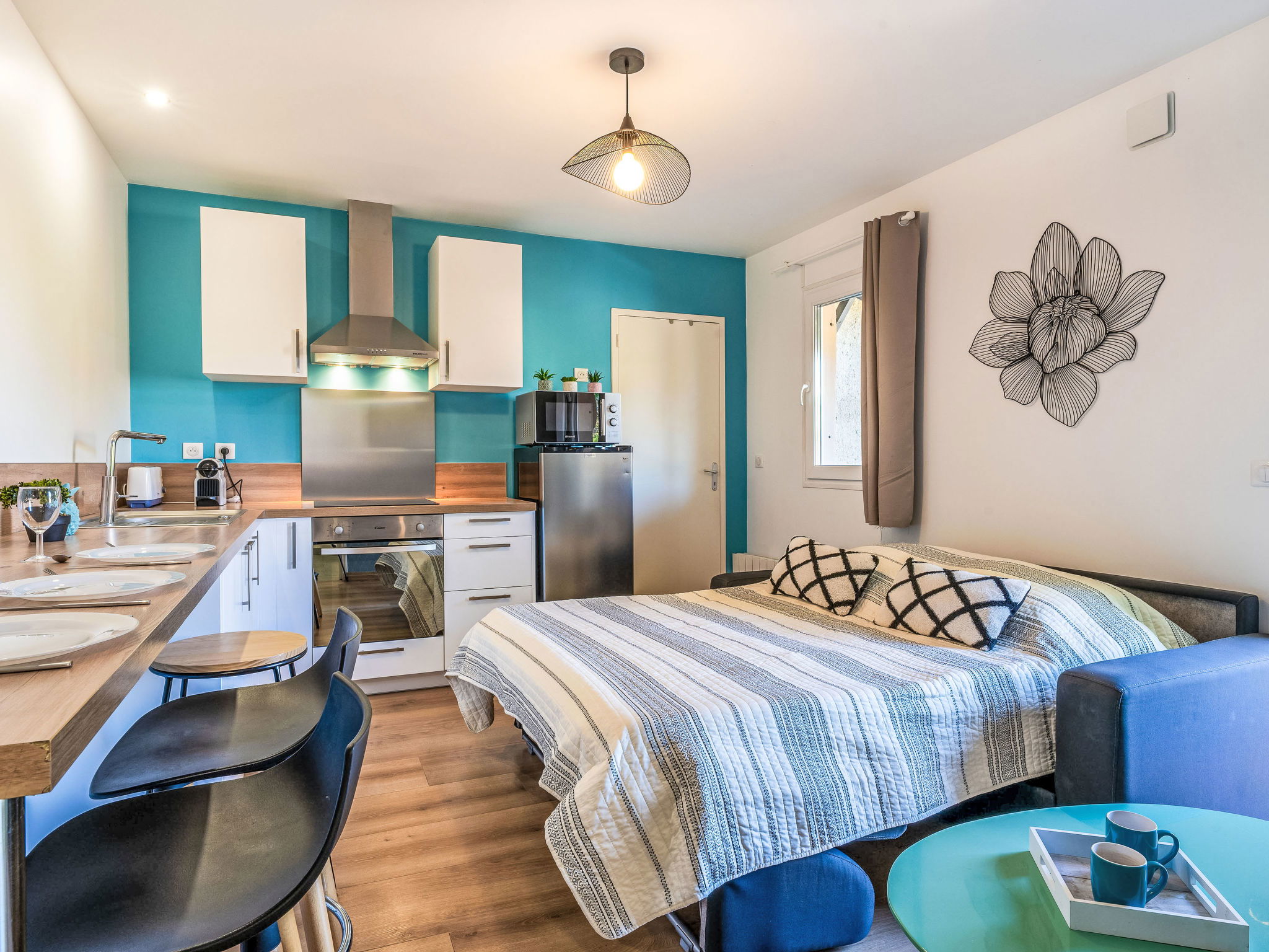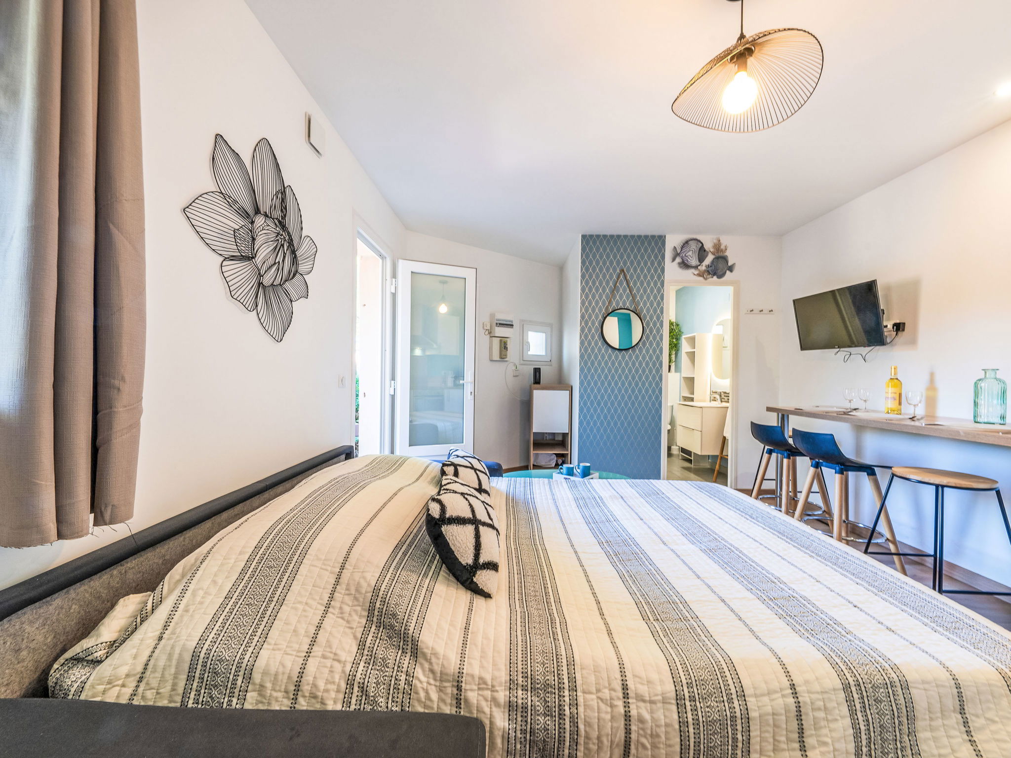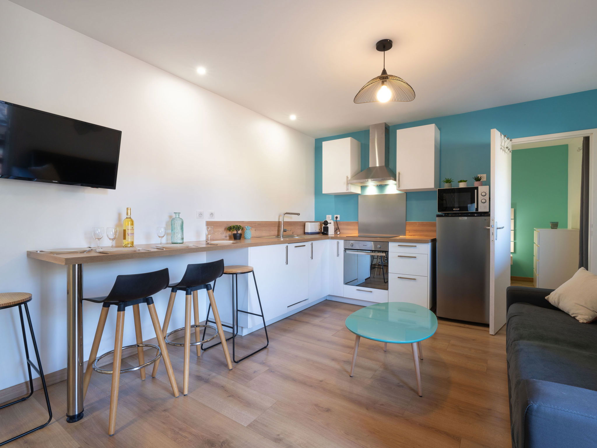2-room apartment 30 m2 on 1st floor. Beautiful and tasteful furnishings: living/dining room with 1 double sofabed (1 x 140 cm, length 190 cm), TV (flat screen). Exit to the terrace. 1 room with 1 french bed (1 x 140 cm, length 190 cm). Open kitchen (oven, dishwasher, 3 induction hot plates, toaster, kettle, microwave, electric coffee machine, Capsules for coffee machine (Nespresso) extra). Shower/WC. Electric heating. Terrace 8 m2, north facing position. Terrace furniture. Facilities: washing machine, hair dryer. Internet (WiFi, free). Please note: non-smokers only, no parking. Maximum 1 small pet/ dog allowed. Smoke alarm, no lift. Offer by a private individual according to Art. 155, IV of CGI. 3300900331454