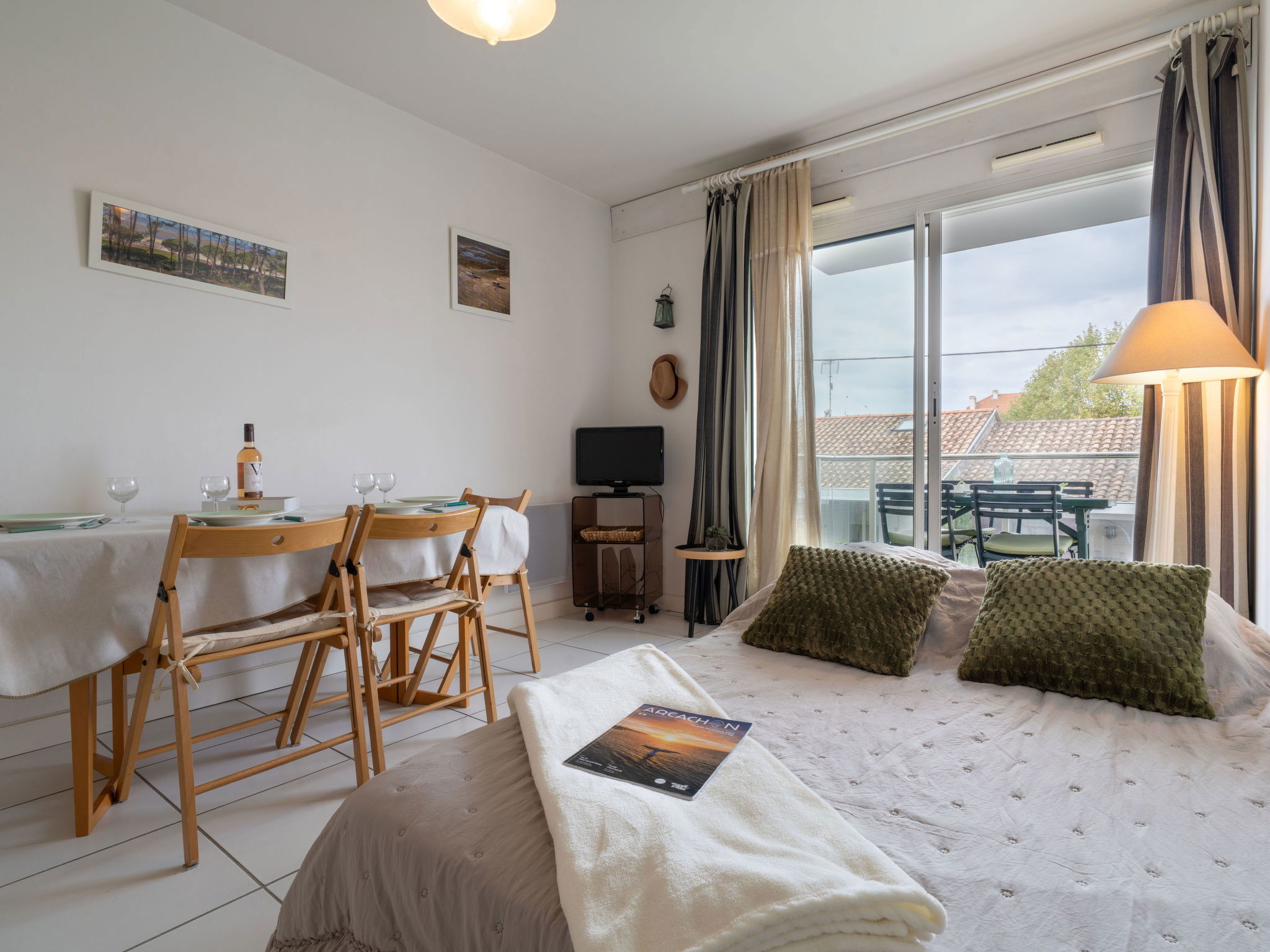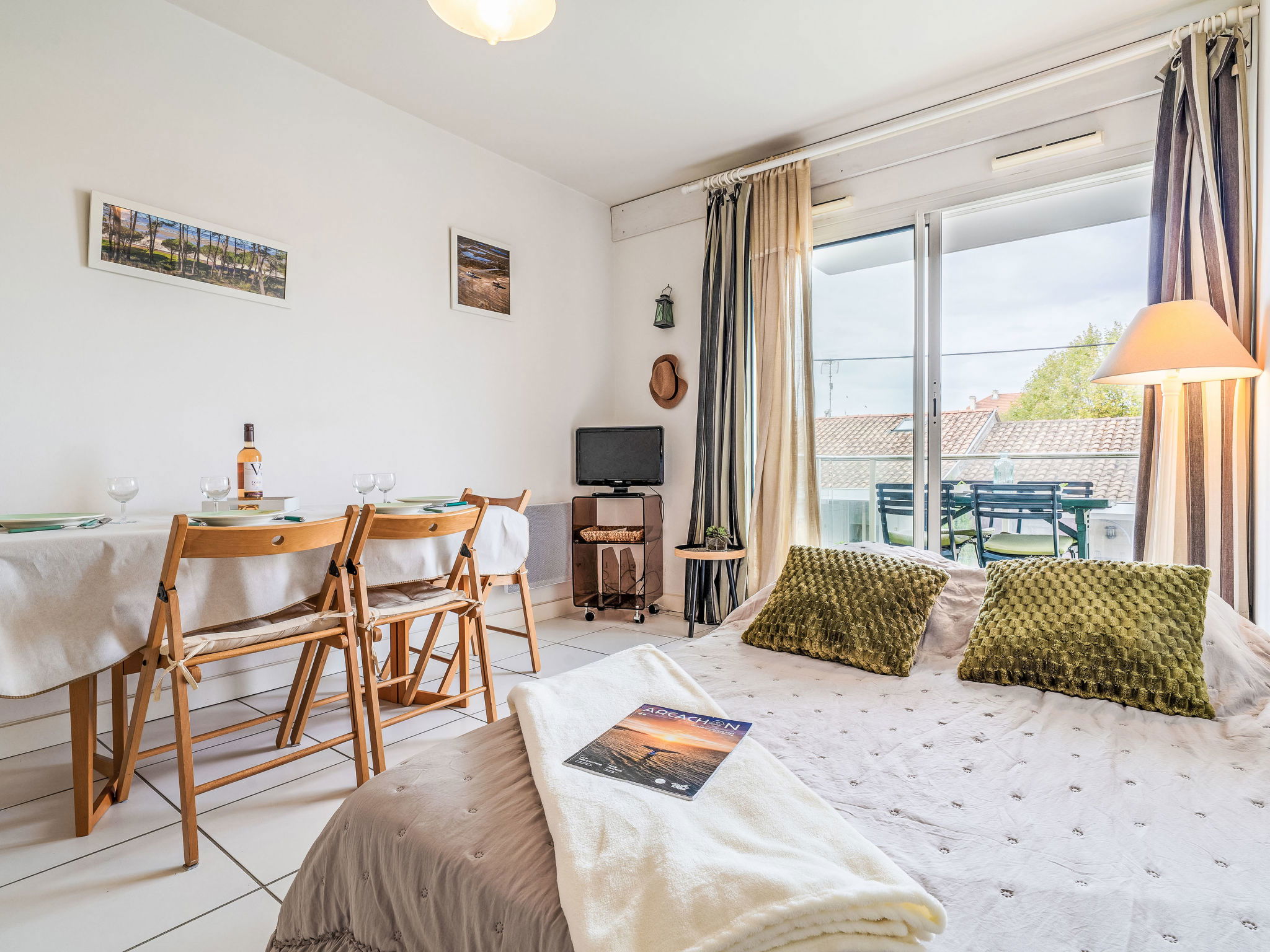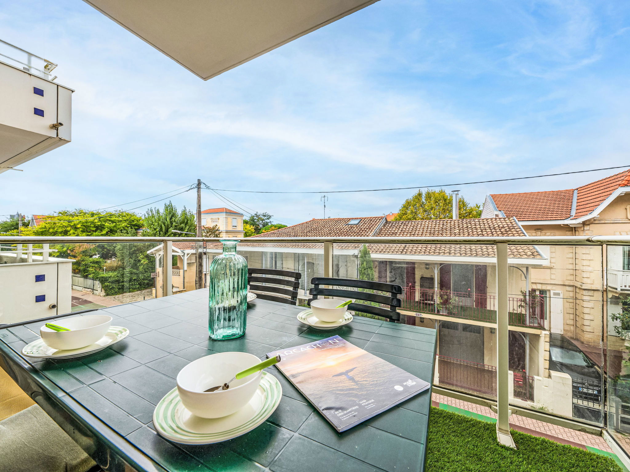 Arcachon: Residence "Les Oyats". 200 m from the sea, 200 m from the beach. In the complex: lift. Shop 240 m, grocery, supermarket 350 m, shopping centre 4.9 km, restaurant 240 m, bar, bakery 350 m, café 240 m, bus stop "Cours Tartas 1" 800 m, railway station "Arcachon" 1.1 km, sandy beach "Thiers" 200 m, park "Mauresque" 800 m, thermal baths "Thalazur" 2.4 km. Sports harbour 3.8 km, golf course (18 hole) 4.2 km. Nearby attractions: Dune du Pyla 11.3 km, Eratopia 10.6 km, Navette Maritime pour le Cap Ferret 350 m, Observatoire Sainte Cécile 700 m, Marché Municipal 500 m, Casino 850 m. Well-known lakes can easily be reached: Lac de la Magdeleine 11.9 km, Lac de Cazaux 18.6 km. The keys‘ handover takes place by the agency in Arcachon.