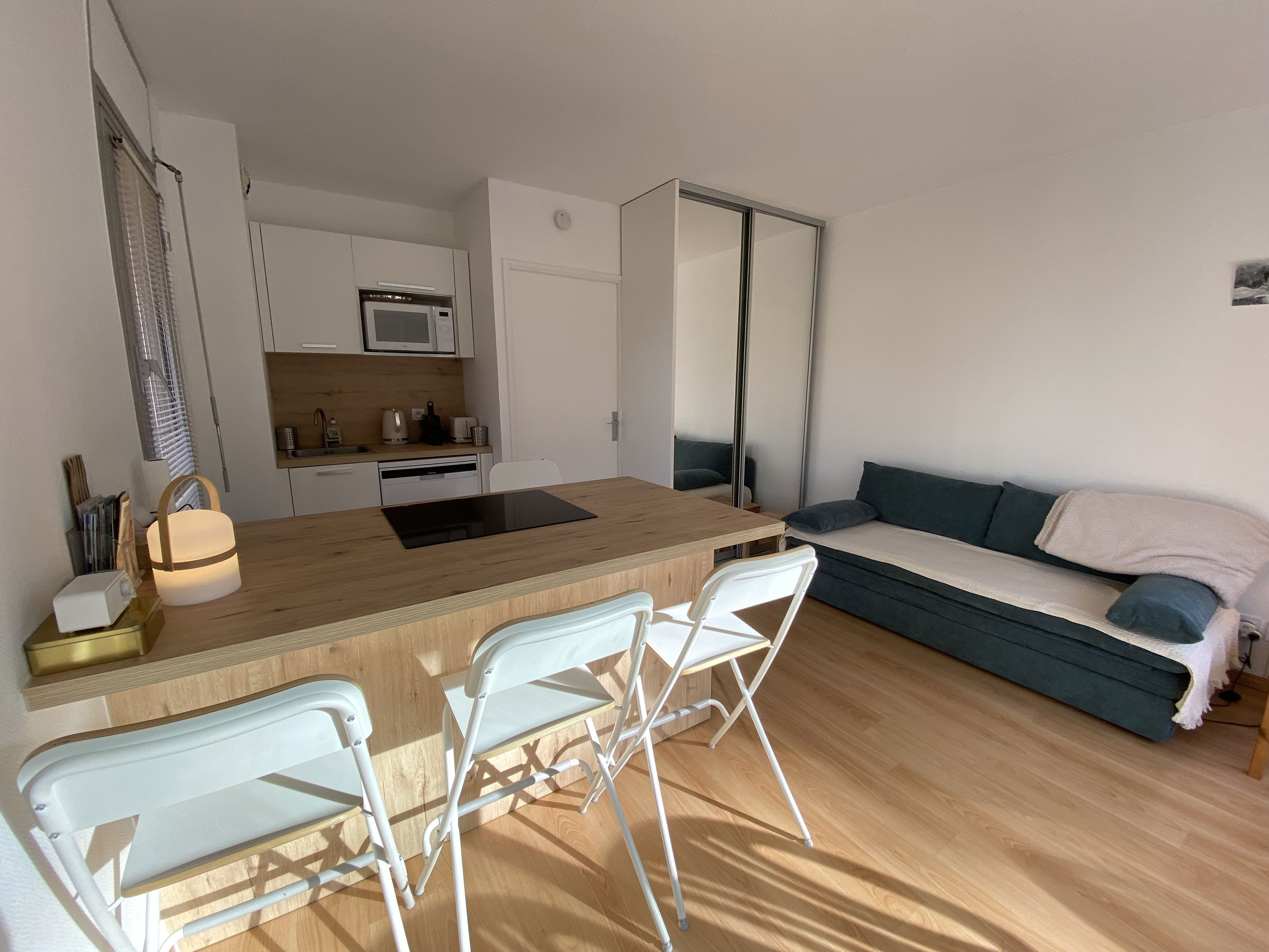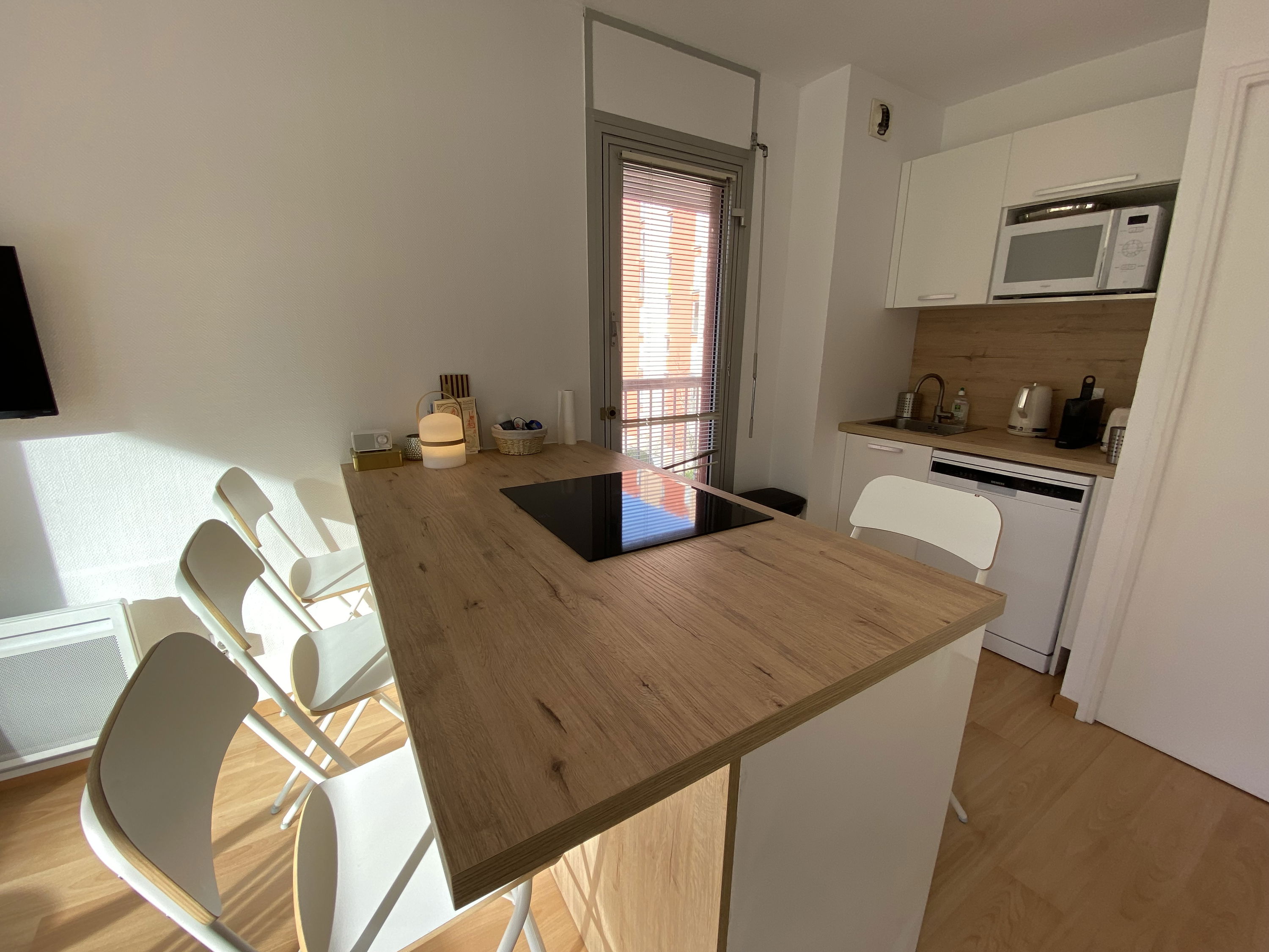 - Equipped kitchen: induction hob, fridge-freezer, multi-function microwave.