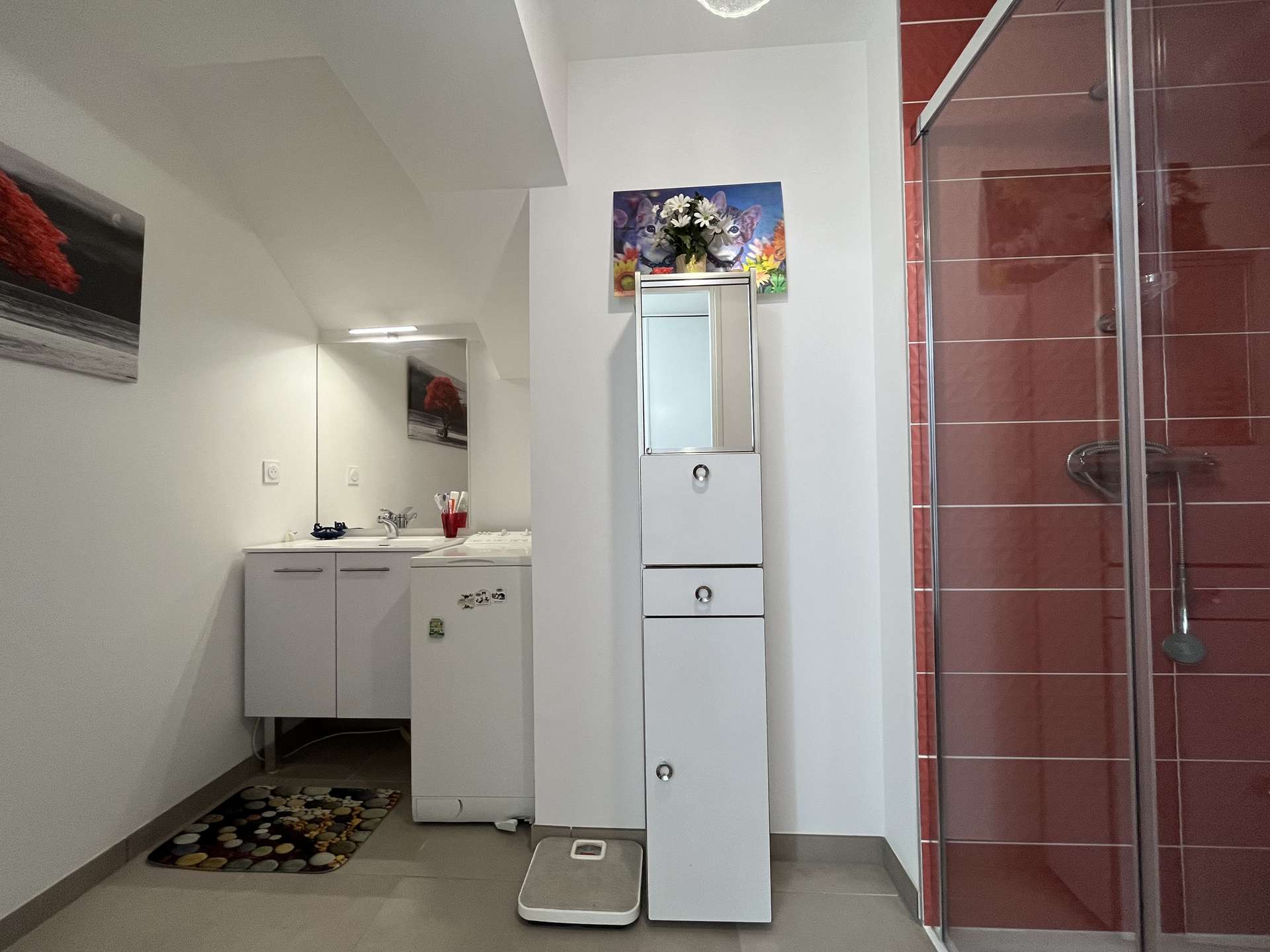 A second bathroom with a washing machine is a real plus for stays of several nights.