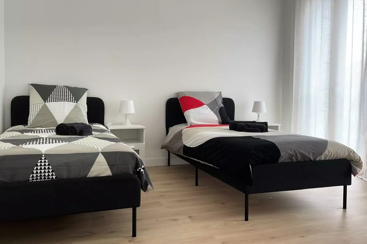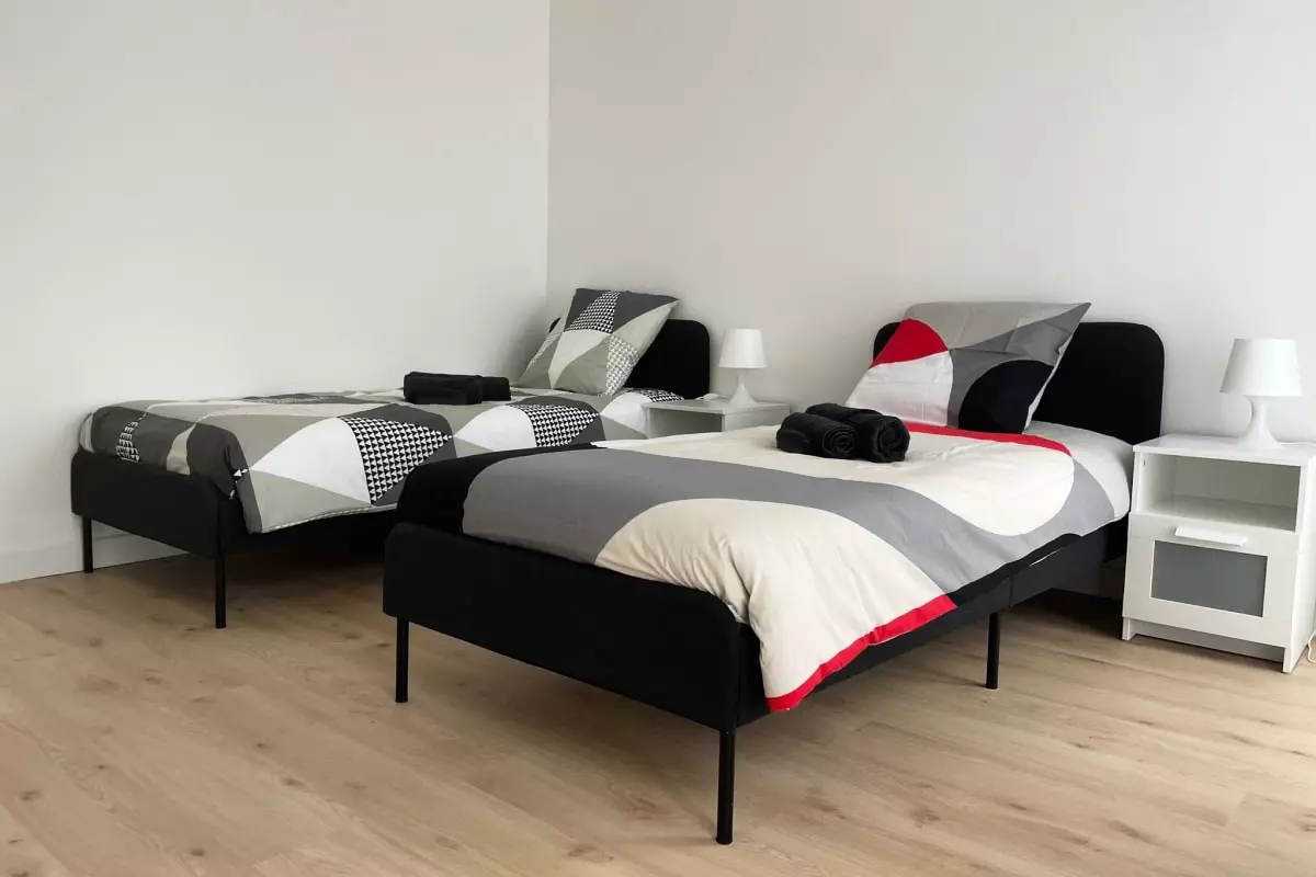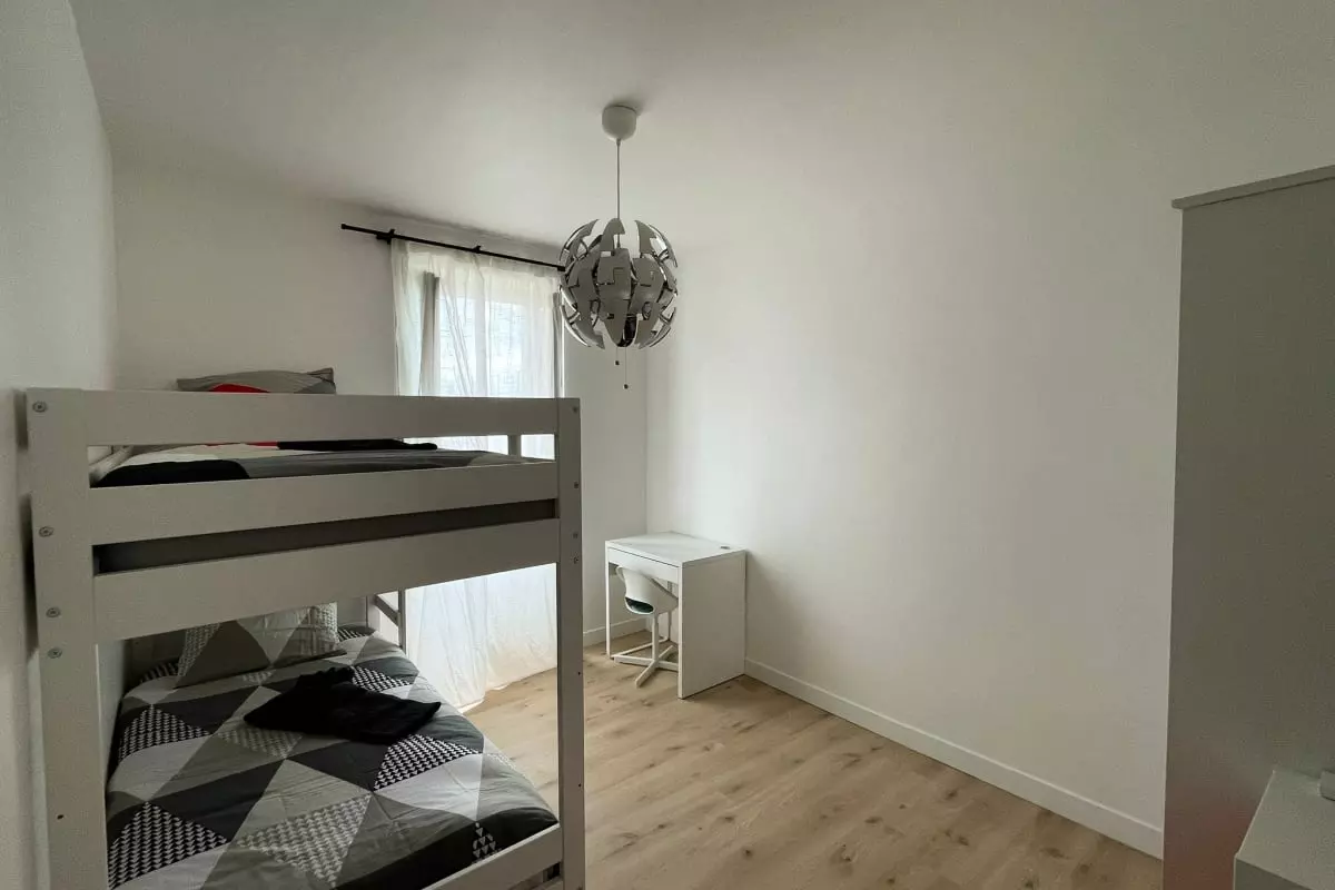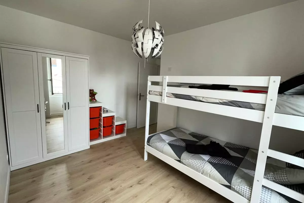 - three bedrooms with a double bed, a bunk bed and two single beds;