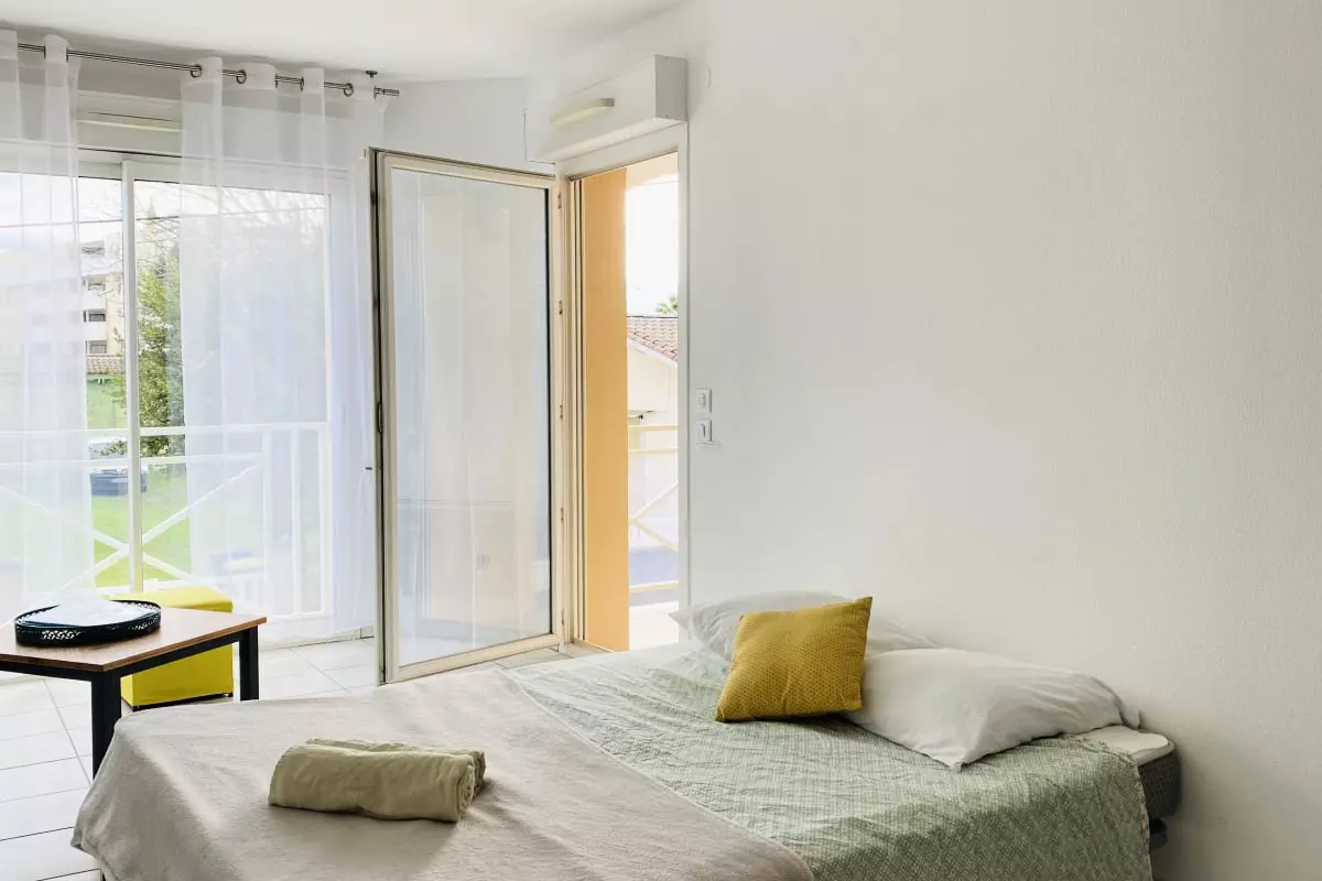 Bordeaux is approximately 60 minutes away by car or bus: the stop is 3 minutes from the apartment.
