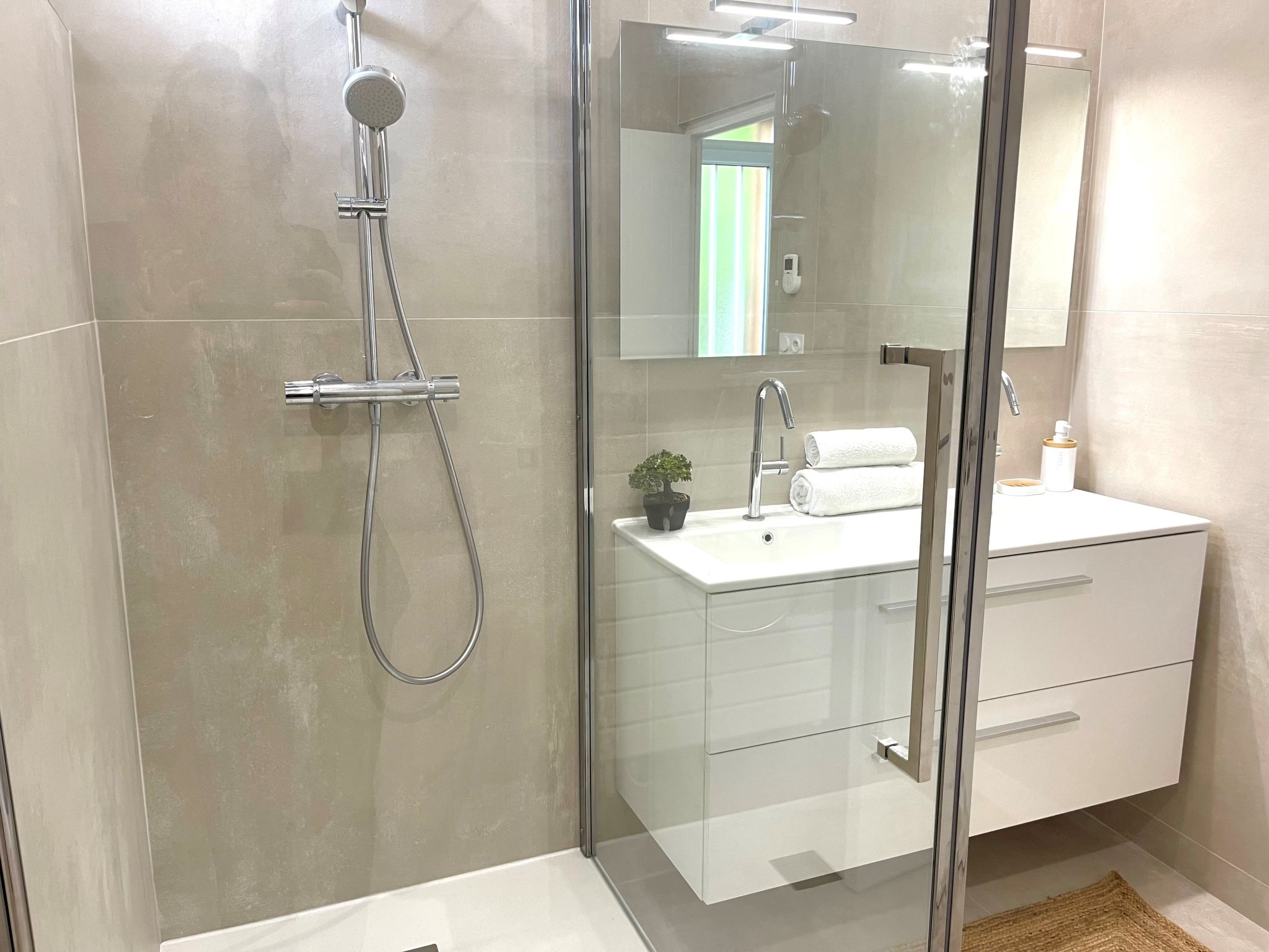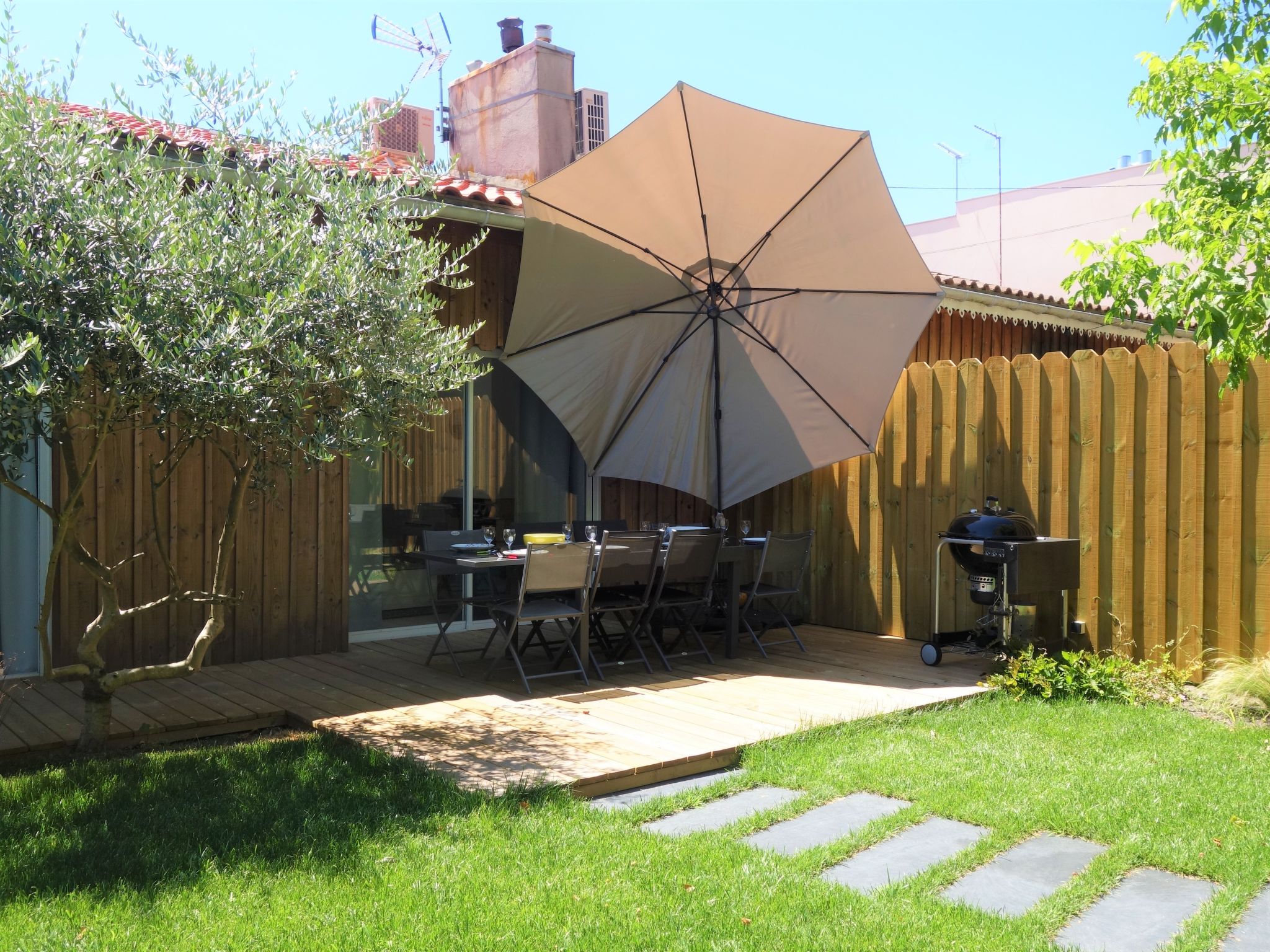 La Teste De Buch 5 km from Arcachon: Very modern, beautiful, comfortable single-family house "Le Chant Des 4 Sirènes". In the centre of La Teste De Buch, excellent location: right in the centre but still quiet, 3.2 km from the sea, 3.2 km from the beach. Private: well-kept garden 85 m2 (fenced). In the house: table football. Parking, public parking on the road. Shop 850 m, grocery, supermarket 350 m, shopping centre 850 m, restaurant 400 m, bar 150 m, bakery 300 m, café 120 m, bicycle rental 350 m, 3 minute walk to the centre, bus stop "La Gare de La Teste" 50 m, railway station "La Teste De Buch" 50 m, sandy beach "Plage de l'Aiguillon" 3.2 km, park "De La Chêneraie" 2.4 km, diving center 3.3 km. Sports harbour 2 km, golf course (18 hole) 4 km, surf school 6.4 km. Nearby attractions: Aqualand 4.9 km, Kid Park 4.7 km, Dune du Pyla 9.6 km, Navette maritime pour le Cap Ferret 4.4 km, Marché Municipal 1 km, Réserve Ornithologique du Teich 10.9 km. Well-known lakes can easily be reached: Lac de la Magdeleine 6 km, Lac de Cazaux 20.4 km, Lac de Sanguinet 22.1 km. The keys‘ handover takes place by the agency in Arcachon, 5 km.