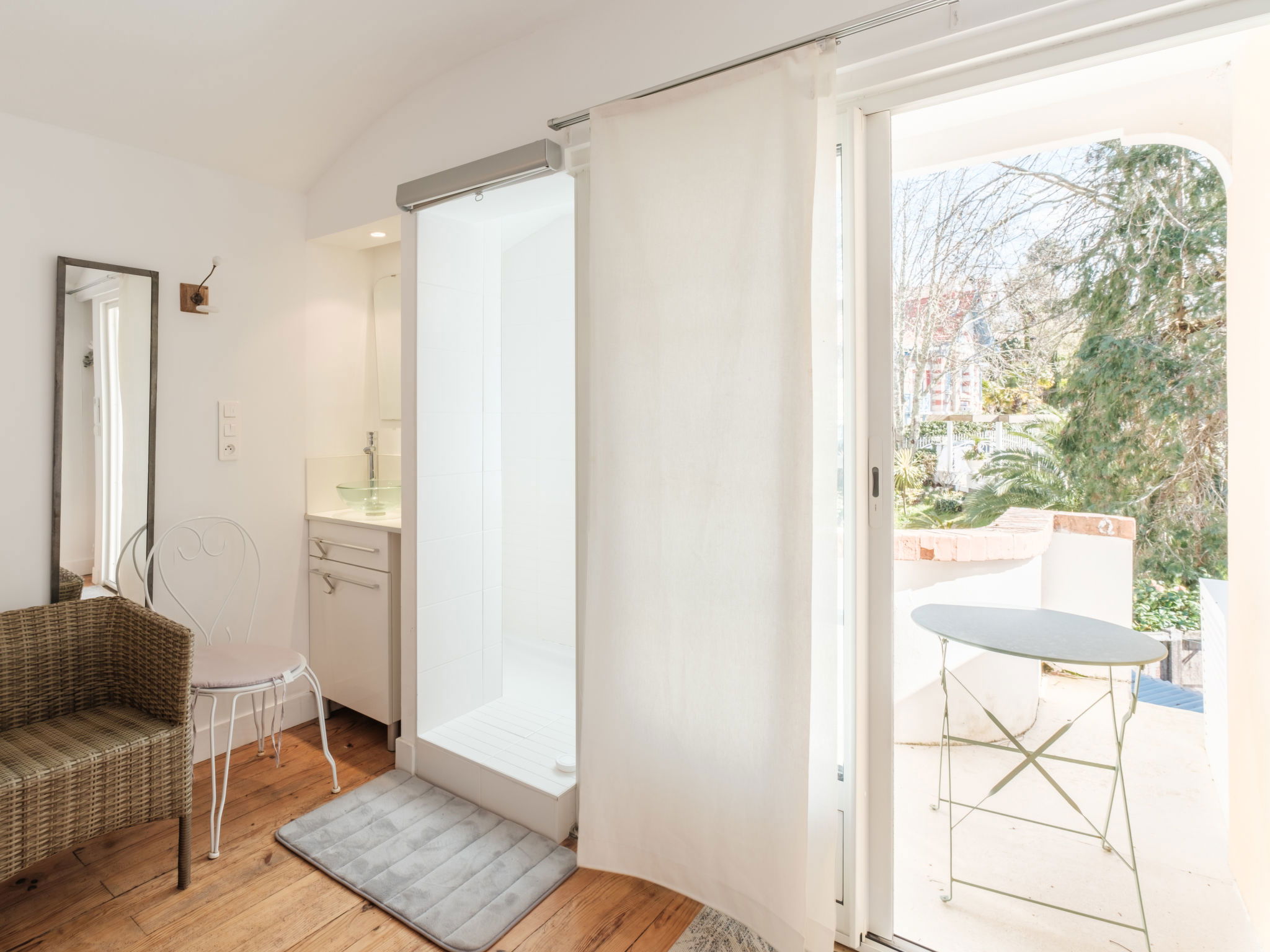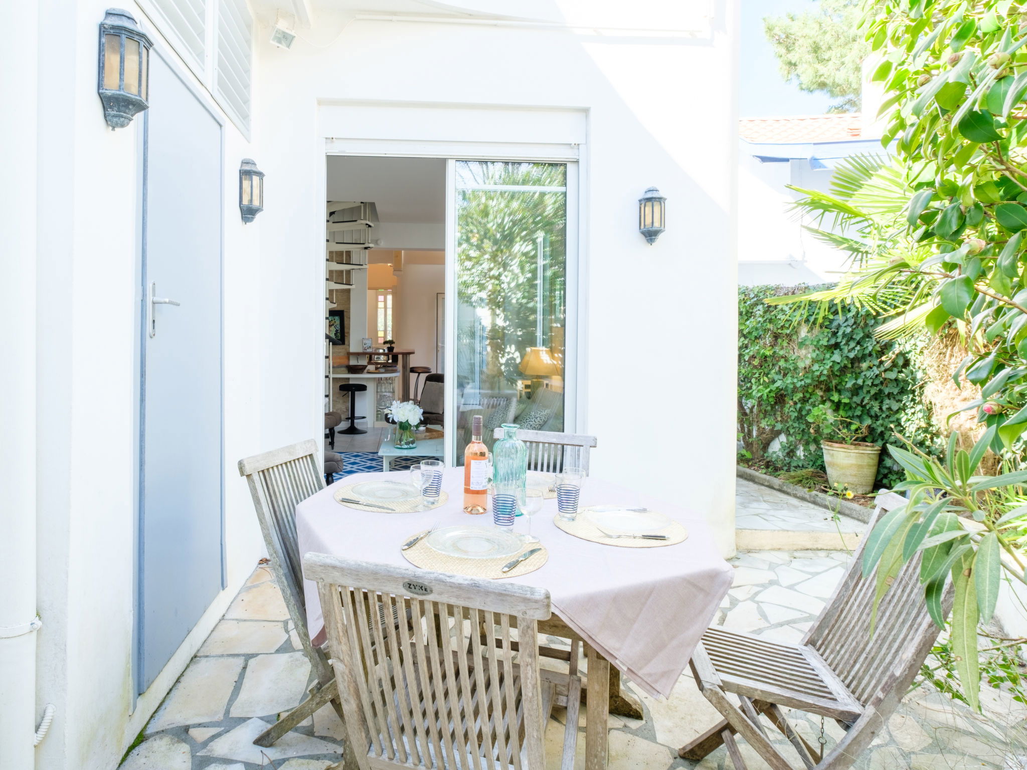 Arcachon: Beautiful single-family house "La Petite Arcachonnaise". In the district of la Ville d'Hiver, from the sea, 550 m from the beach. Public parking on the road. Shop, grocery, supermarket 750 m, shopping centre 4 km, restaurant 400 m, bar 1.4 km, bakery 400 m, café 450 m, bicycle rental 900 m, 15 minute walk to the centre, bus stop "Eglise Notre-Dame" 400 m, railway station "Arcachon" 1.3 km, sandy beach "Thiers" 550 m, park "Mauresque" 850 m, thermal baths "Thalazur" 1.8 km. Sports harbour 4.3 km, golf course (18 hole) 3.9 km, surf school 3.1 km, minigolf 9.5 km. Nearby attractions: Marché municipal 1 km, Dune du Pyla 9.4 km, Navette Maritime pour Le Cap Ferret 1.4 km, Réserve Ornithologique du Teich 15.4 km, Casino 1.6 km, Aqualand 9.9 km. Well-known lakes can easily be reached: Lac de la Magdeleine 11.1 km, Lac de Cazaux 19.6 km, Lac de Sanguinet 26.6 km. The keys‘ handover takes place by the agency in Arcachon, 1 km. Neighbourhood highly sensitive to noise. Quietness and good behaviour expected.