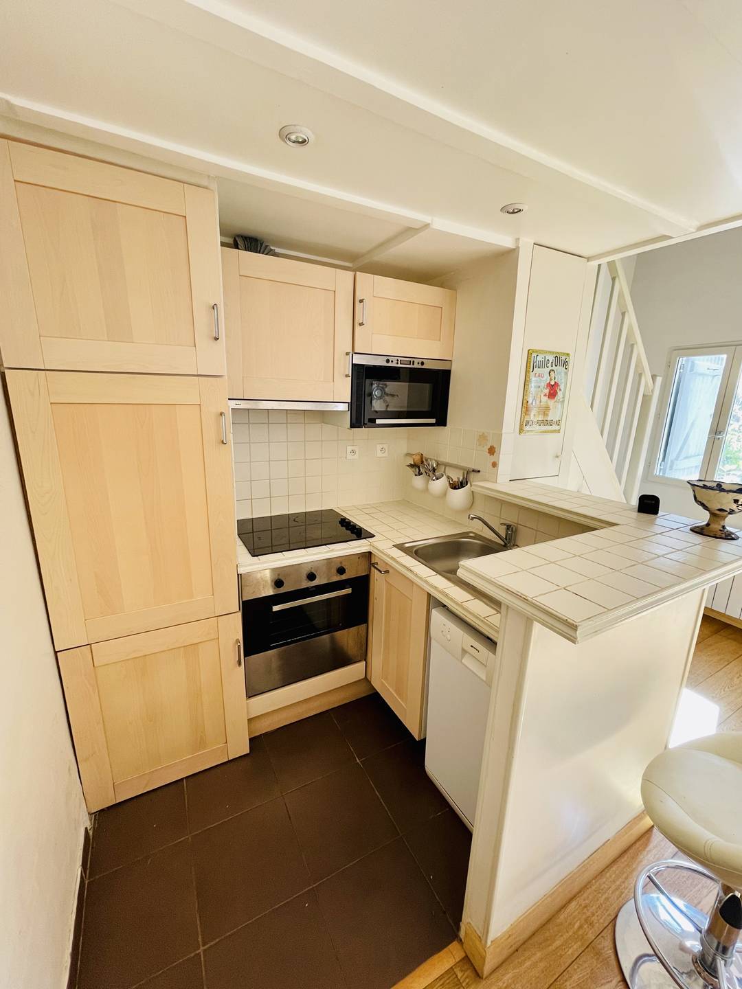 Near the Moorish park (550 m), in a small one-way street, house of around 50 m² with terrace. ARCACHON, NEAR THE CENTER – WINTER TOWN: 800 M FROM THE THIERS JETTY AND THE BEACH Near the Moorish park (550 m), in a small one-way street, house of around 50 m² with terrace. Entrance via dining room – Equipped US kitchen (refrigerator with freezer section, traditional oven, microwave oven, 4-burner hob, dishwasher) – 1st mezzanine (lit by Velux window): 1 bed 140 – Living room (1 sofa bed in 140, large TV) – Shower room with WC and washing machine – 2nd mezzanine (lit by Velux window): 2 beds in 90. Plenty of storage / cupboards. Pretty terrace of about 15 m² facing south-east, with a small pond with fish, furniture and barbecue. Good location: Hypermarket at 400 m, bakery at 450 m and market (place des marquises) at 700 m. Easy parking (avenues Michel de Montaigne / Victor Hugo). Pets not allowed. White linen not provided: Possibility to rent some through our partner LocLinge (promo code: vacances33). Cancellation insurance included (with optional membership). Departure cleaning included (following normal and regular maintenance of the rental during the stay).