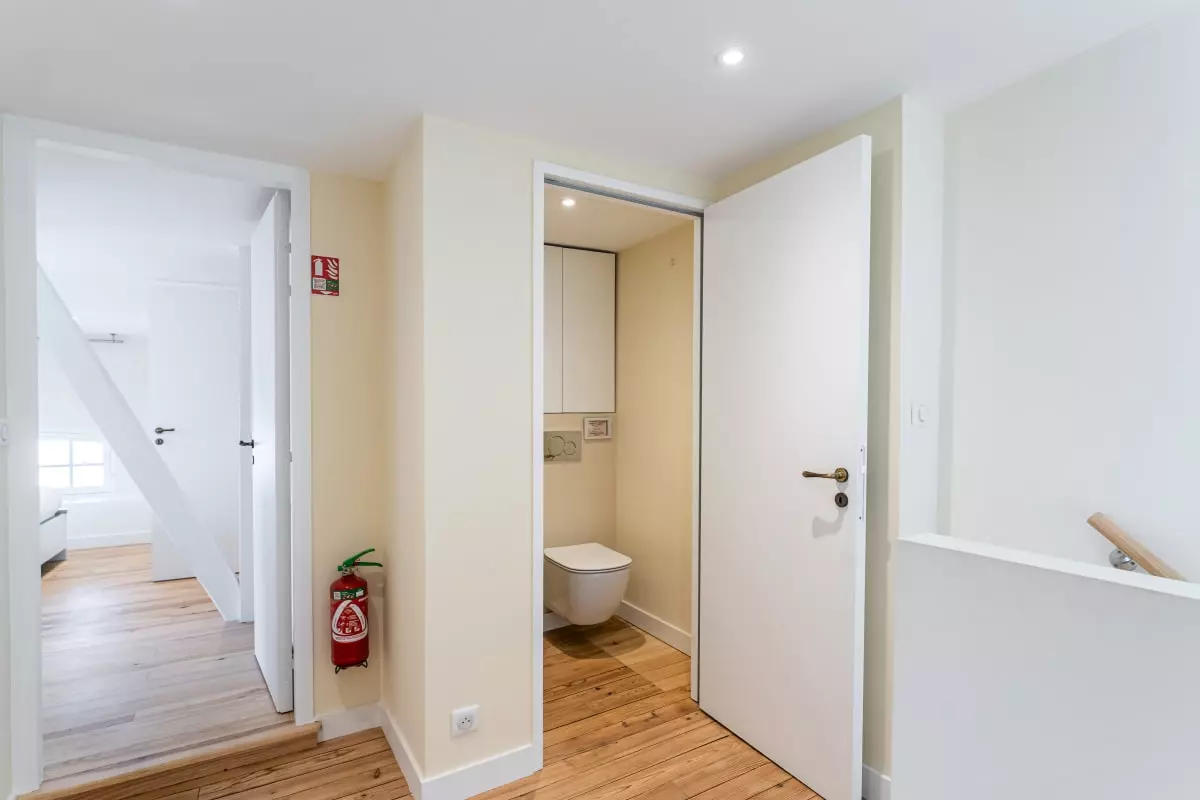 The second floor serves three other bedrooms, each with a queen-size bed (160 cm). One bedroom has its own private bathroom, and the last bathroom is shared by the other two.