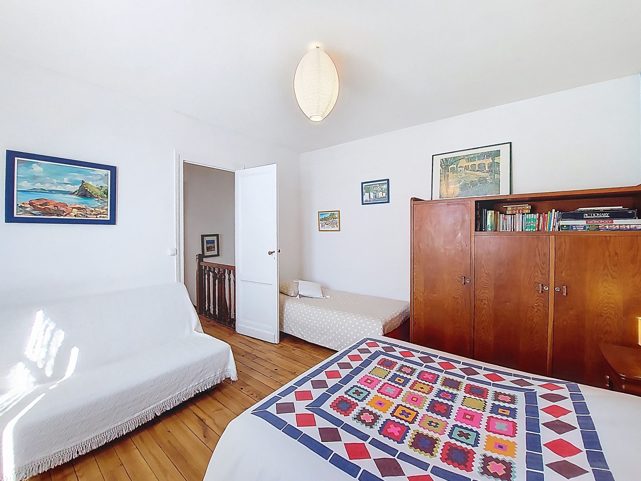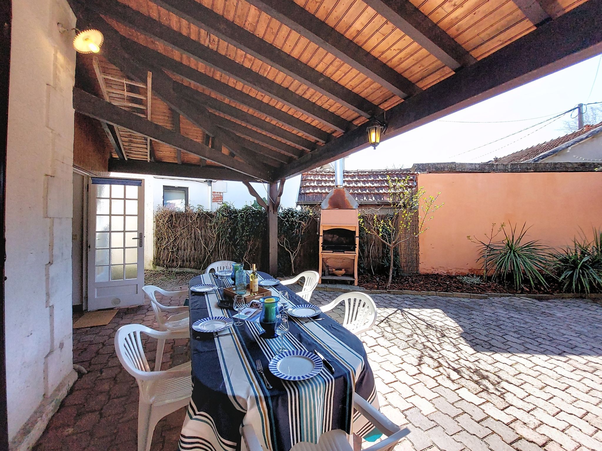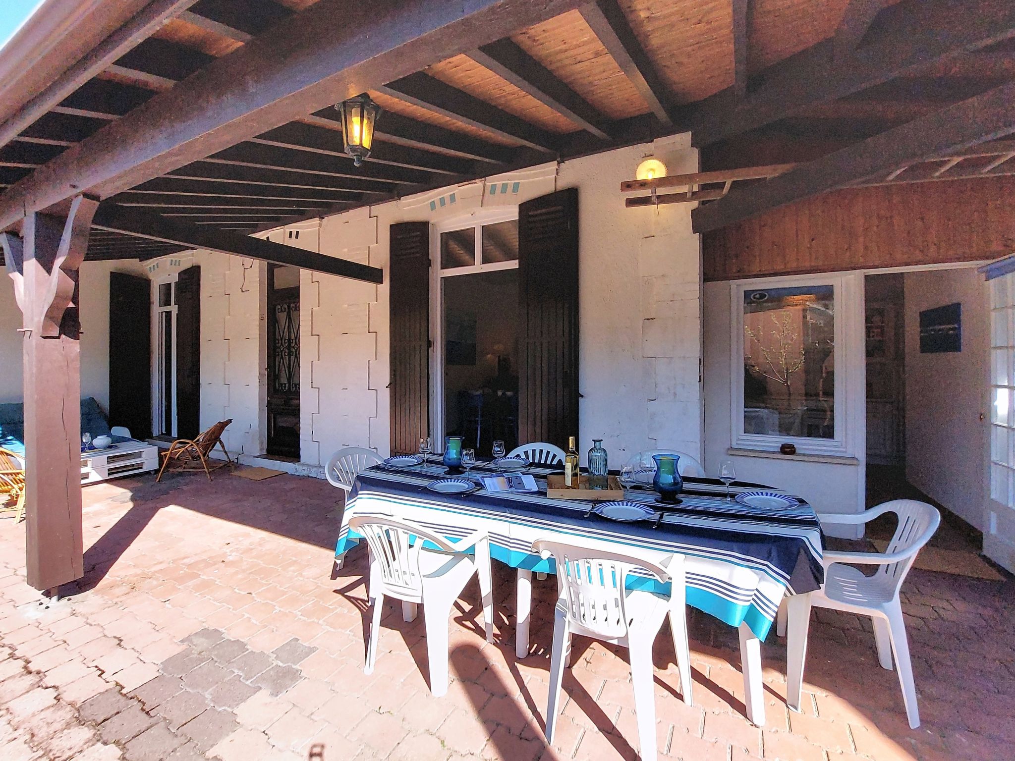 4-room house 100 m2 on 2 levels. Comfortable furnishings: living/dining room with TV (flat screen). Exit to the terrace. 1 room with 1 french bed (1 x 140 cm, length 190 cm). Exit to the terrace. Kitchen (4 hot plates, oven, dishwasher, toaster, kettle, electric coffee machine, Capsules for coffee machine (Dolce Gusto)). Shower, sep. WC. Gas heating. Upper floor: 1 room with 1 french bed (1 x 160 cm, length 200 cm). 1 room with 1 french bed (1 x 140 cm, length 190 cm). Shower/WC. Large terrace 100 m2, south facing position. Terrace furniture. Facilities: washing machine, children's high chair, baby cot, hair dryer. Internet (WiFi, free). Parking (fenced 2 cars). Please note: smoke alarm. Offer by a private individual according to Art. 155, IV of CGI. 33009003961E4