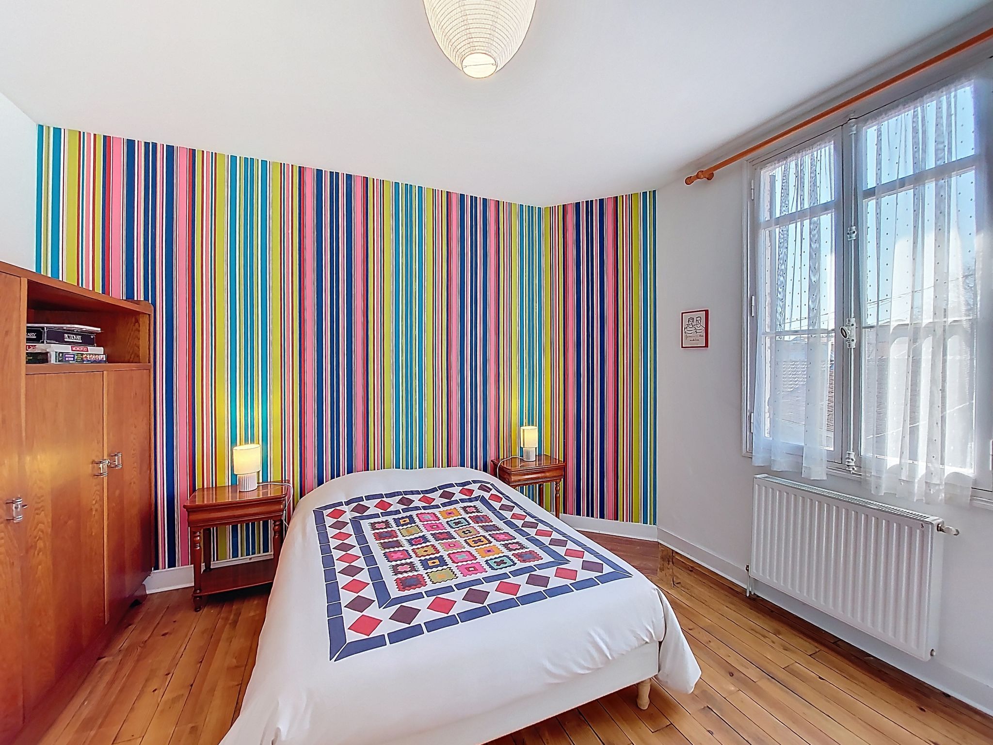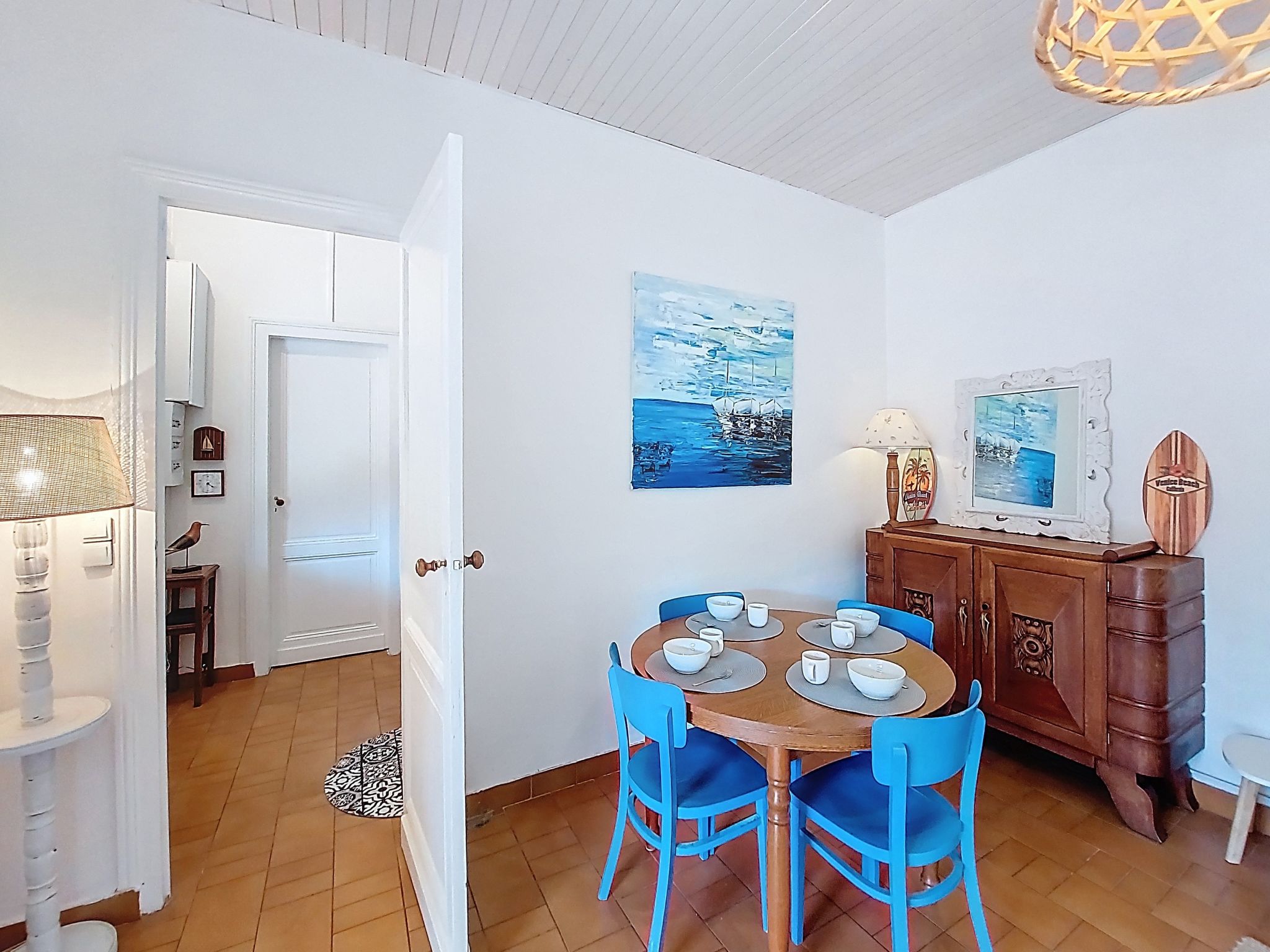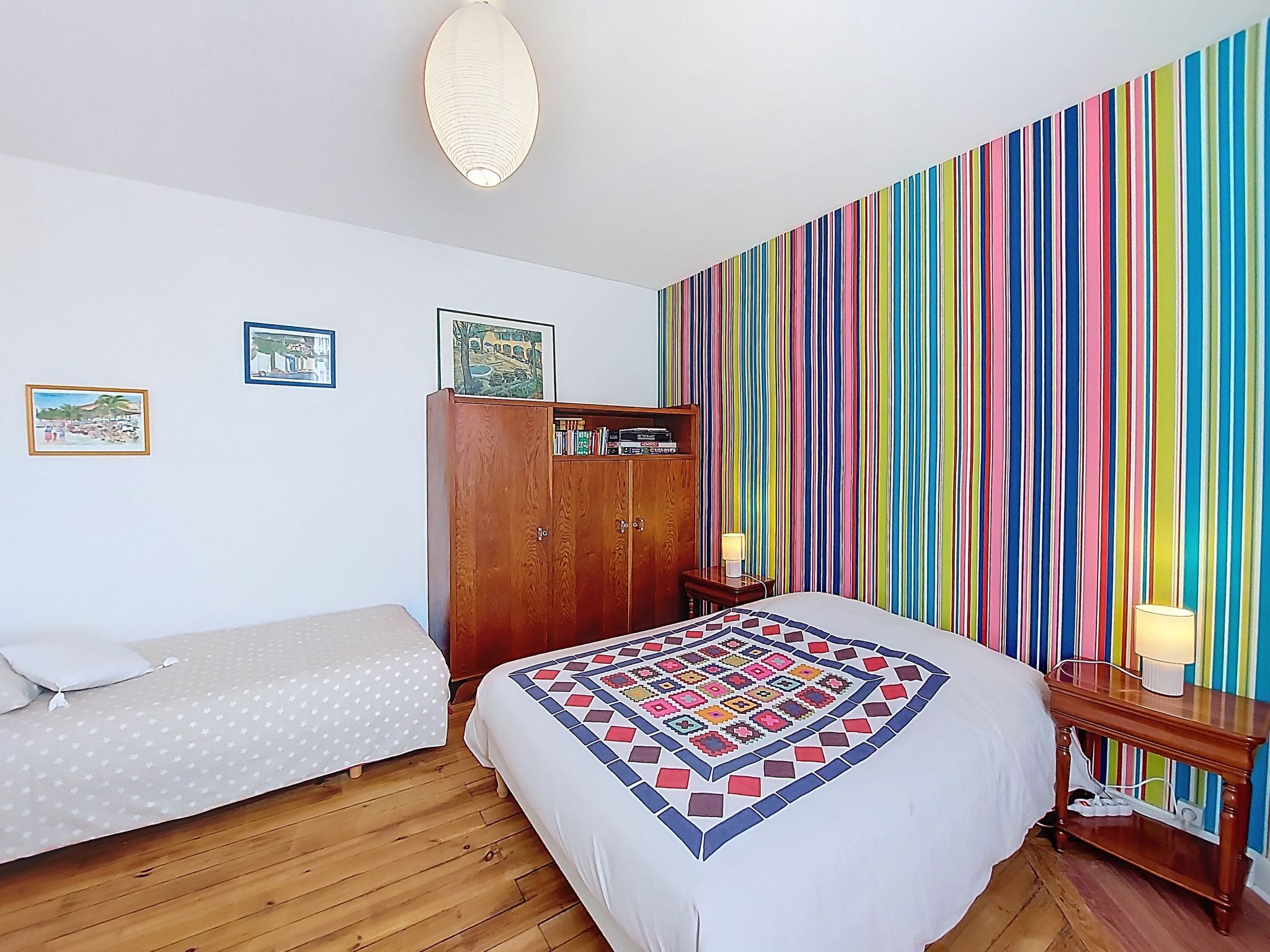 4-room house 100 m2 on 2 levels. Comfortable furnishings: living/dining room with TV (flat screen). Exit to the terrace. 1 room with 1 french bed (1 x 140 cm, length 190 cm). Exit to the terrace. Kitchen (4 hot plates, oven, dishwasher, toaster, kettle, electric coffee machine, Capsules for coffee machine (Dolce Gusto)). Shower, sep. WC. Gas heating. Upper floor: 1 room with 1 french bed (1 x 160 cm, length 200 cm). 1 room with 1 french bed (1 x 140 cm, length 190 cm). Shower/WC. Large terrace 100 m2, south facing position. Terrace furniture. Facilities: washing machine, children's high chair, baby cot, hair dryer. Internet (WiFi, free). Parking (fenced 2 cars). Please note: smoke alarm. Offer by a private individual according to Art. 155, IV of CGI. 33009003961E4