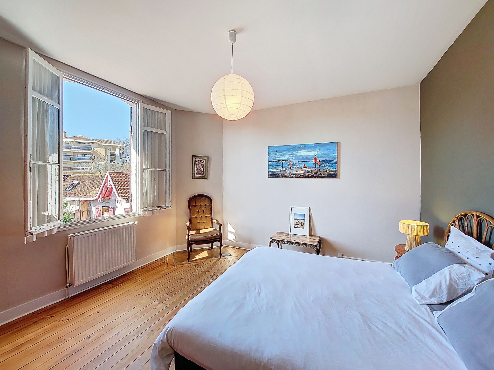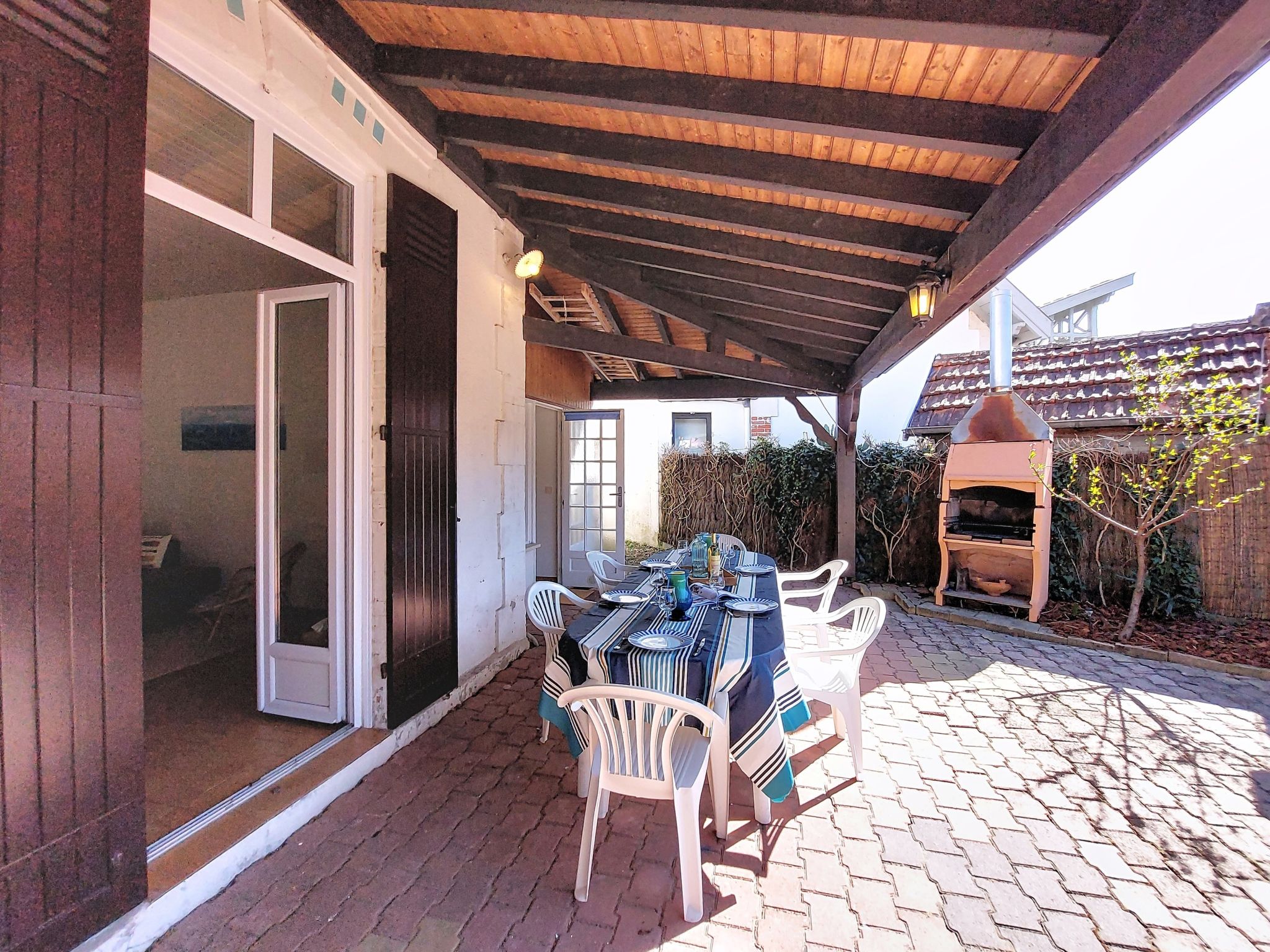 Arcachon: Single-family house "La Belle Héricart". 500 m from the sea, 500 m from the beach. Shop 700 m, grocery 550 m, shopping centre 3.6 km, restaurant, bar 550 m, bakery 500 m, café 450 m, 10 minute walk to the centre, bus stop "Gare d'Arcachon" 450 m, railway station "Arcachon" 450 m, sandy beach "Plage d'Eyrac" 500 m, park "Mauresque" 1.3 km, thermal baths "Thalazur" 3.5 km. Sports harbour 1.7 km, golf course (18 hole) 4.5 km. Nearby attractions: Dune du Pyla 10.8 km, Eratopia 9.1 km, Navette Maritime pour le Cap Ferret 1.4 km, Marché Municipal 1 km, Observatoire Sainte Cécile 1.5 km, Casino 400 m. Well-known lakes can easily be reached: Lac de la Magdeleine 10.4 km, Lac de Cazaux 18.8 km. The owner does not accept any youth groups. The keys‘ handover takes place by the agency in Arcachon, 1 km. Neighbourhood highly sensitive to noise. Quietness and good behaviour expected.