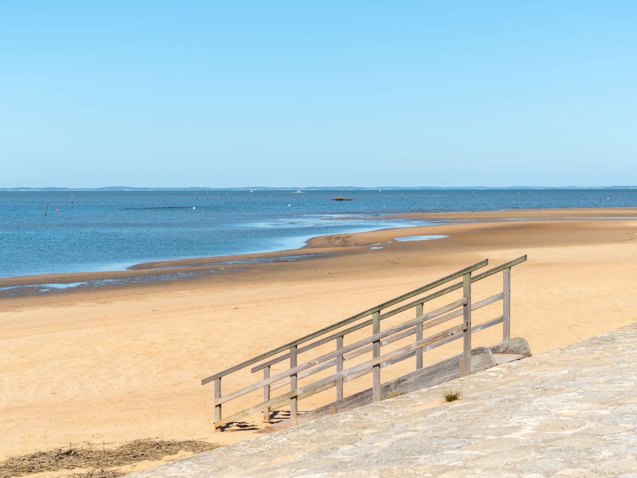 Gujan Mestras 10 km from Arcachon: Single-family house "L'Albizia". 2.3 km from the sea, 2.3 km from the beach. Private: property 1'000 m2 (fenced), parking on the premises. Supermarket 2.6 km, restaurant, bakery 450 m, bus stop "La Prairie" 600 m, railway station "Gujan/La Hume" 2.3 km, sandy beach "la Hume" 2.3 km. Golf course (18 hole) 7.1 km, cycle lane 300 m. Nearby attractions: Eratopia 3.6 km, Arca Jet Marine 7.3 km, Dune du Pyla 12.1 km, Navette maritime pour le Cap Ferret 9 km, Casino 8 km, Réserve Ornithologique du Teich 7.1 km. Well-known lakes can easily be reached: Lac de la Magdeleine 5.1 km, Lac de Cazaux 16.7 km.