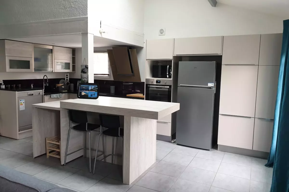 You will have a functional bathroom and a fully equipped kitchen with an oven, microwave, dishwasher, toaster, and kettle. Food lovers will appreciate the raclette grill for convivial evenings, while coffee enthusiasts can use the Tassimo machine. For your comfort, a washing machine, iron, hairdryer, and fans are also provided.