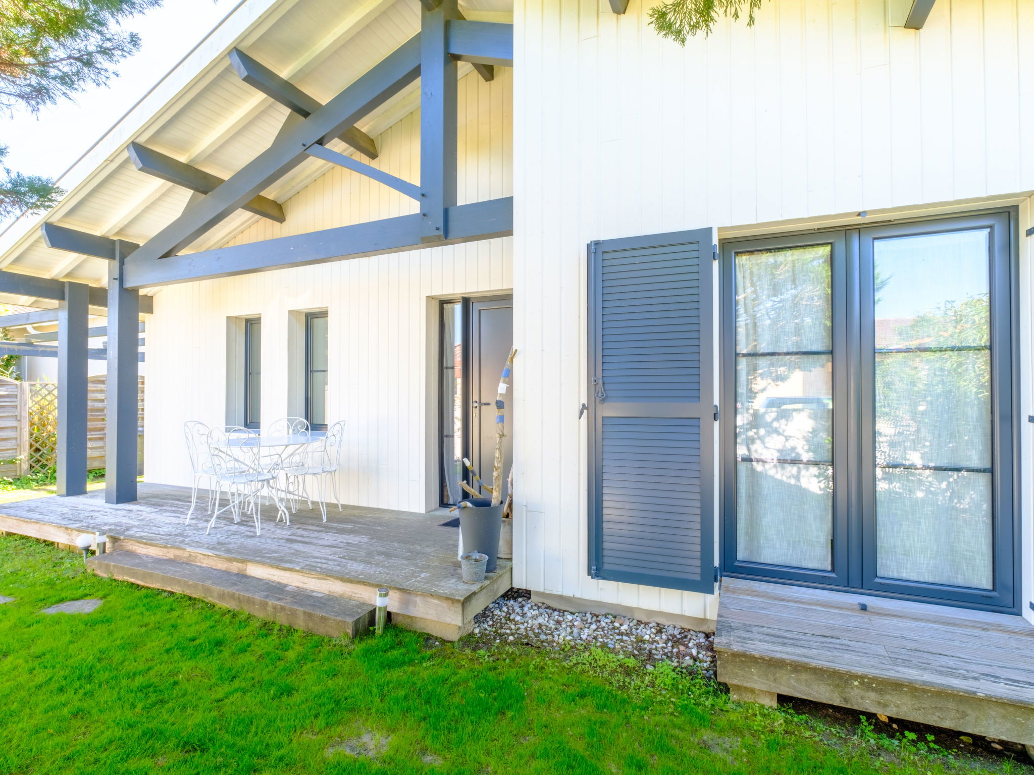 Beautiful villa "Cassy". Private: property 600 m2 (fenced), swimming pool angular, with privacy (9 x 4 m, depth 125 cm, seasonal availability: 01.May. - 30.Sep.) with alarm system. Terrace, parking (for 2 cars) at the house on the premises. Shop 600 m, supermarket 2 km, restaurant, bakery 600 m, bus stop "La Bergerie" 450 m, railway station "Biganos" 13 km, sandy beach "Plage Suzette (Bassin)" 1.3 km. Sports harbour 850 m, golf course (9 hole) 2.5 km. Nearby attractions: Plage Grand Crohot (Océan) 21 km, Cap Ferret / Arcachon 35 km, Lacanau 40 km, Aéroport Bordeaux Mérignac 40 km, Dune du Pilat 60 km. Well-known lakes can easily be reached: Lacanau Lac 35 km. Object suitable for 6 adults + 1 child.